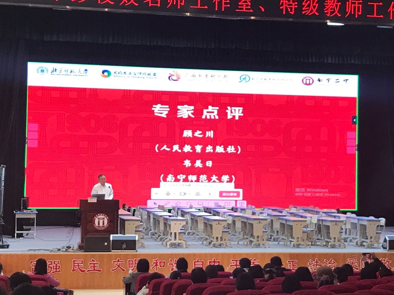 人民教育出版社编审顾之川教授和华体会平台韦美日教授对两节课进行点评。人民教育出版社顾之川教授用三句话表达了自己的听课感受,高度肯定了两位老师展现的现场课例。顾教授指出高中语文教学是在小学初中教学的基础上拓展阅读的宽度、表达的厚度和思维的深度与广度。教师要引导学生多读书、勤思考、勤练笔、多实践,多实践就是把书本的语言和社会生活实践结合起来。培养学生享受阅读、乐于表达、勤于思考、自主学习的四个好习惯。韦美日教授用一句“指向思维品质提升的作文课程”来总评了二中的作文课。韦教授从高中课标中的作文教学出发,对两节课例“真作文”中的思维类型和品质进行了深入浅出的分析,并提出了五条在作文教学中灵活运用提高思维品质的方法。最后,韦教授相信教学有法,教无定法。不同个性的师生,会创造出不同的充满个性的教学方法,有效提升学生的思维品质。