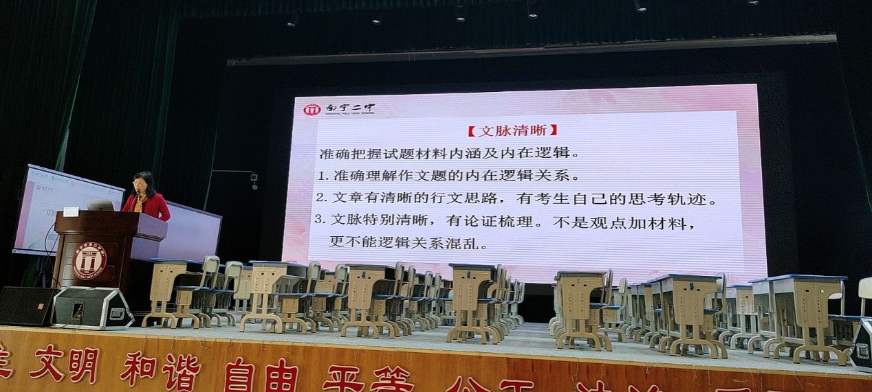 观影后,彭俊姣老师做了题为“‘双新’背景下的作文教学”报告。彭俊姣老师针对作文教学中存在的问题,从课标出发揭示了学生佳作成长的密码,并提出了切实可行的作文教学建议。