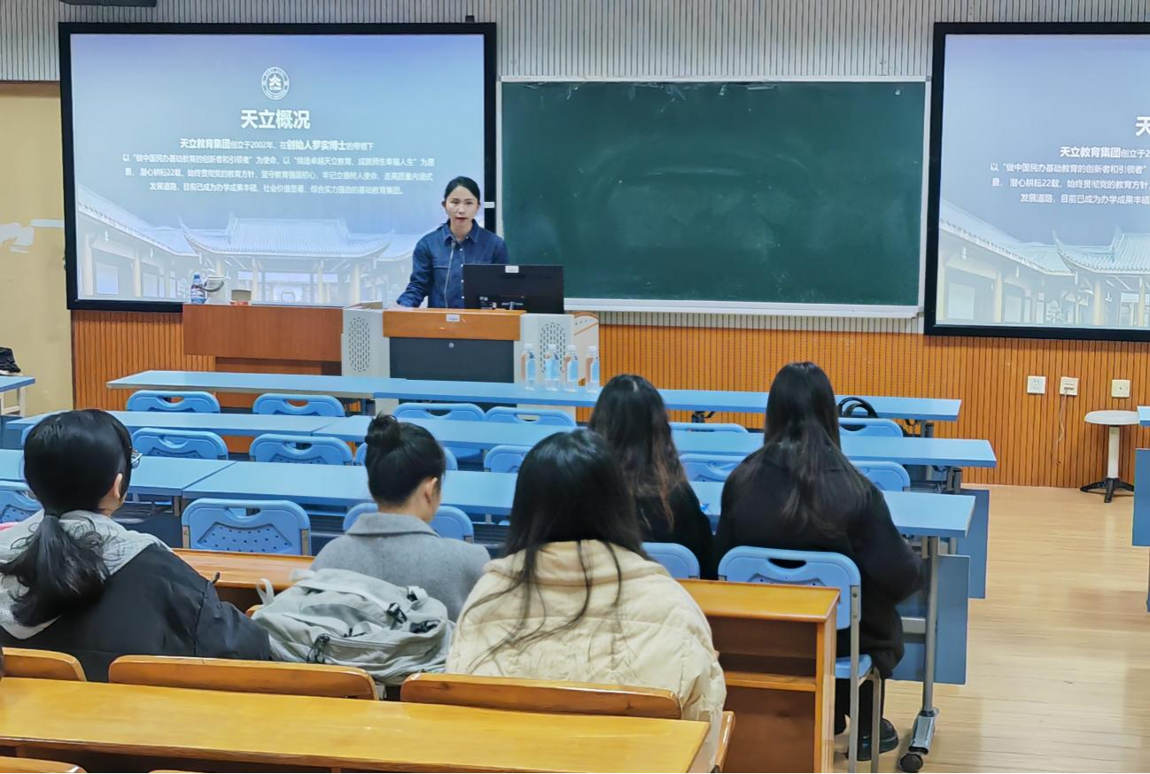 12月15日,百色天立华体会平台和玉林天立华体会平台在华体会平台(中国)明秀校区文星楼315教室举办2025届毕业生专场招聘宣讲会,华体会平台(中国)共有汉语言文学、思想政治教育、生物学、地理科学等专业毕业生参会。