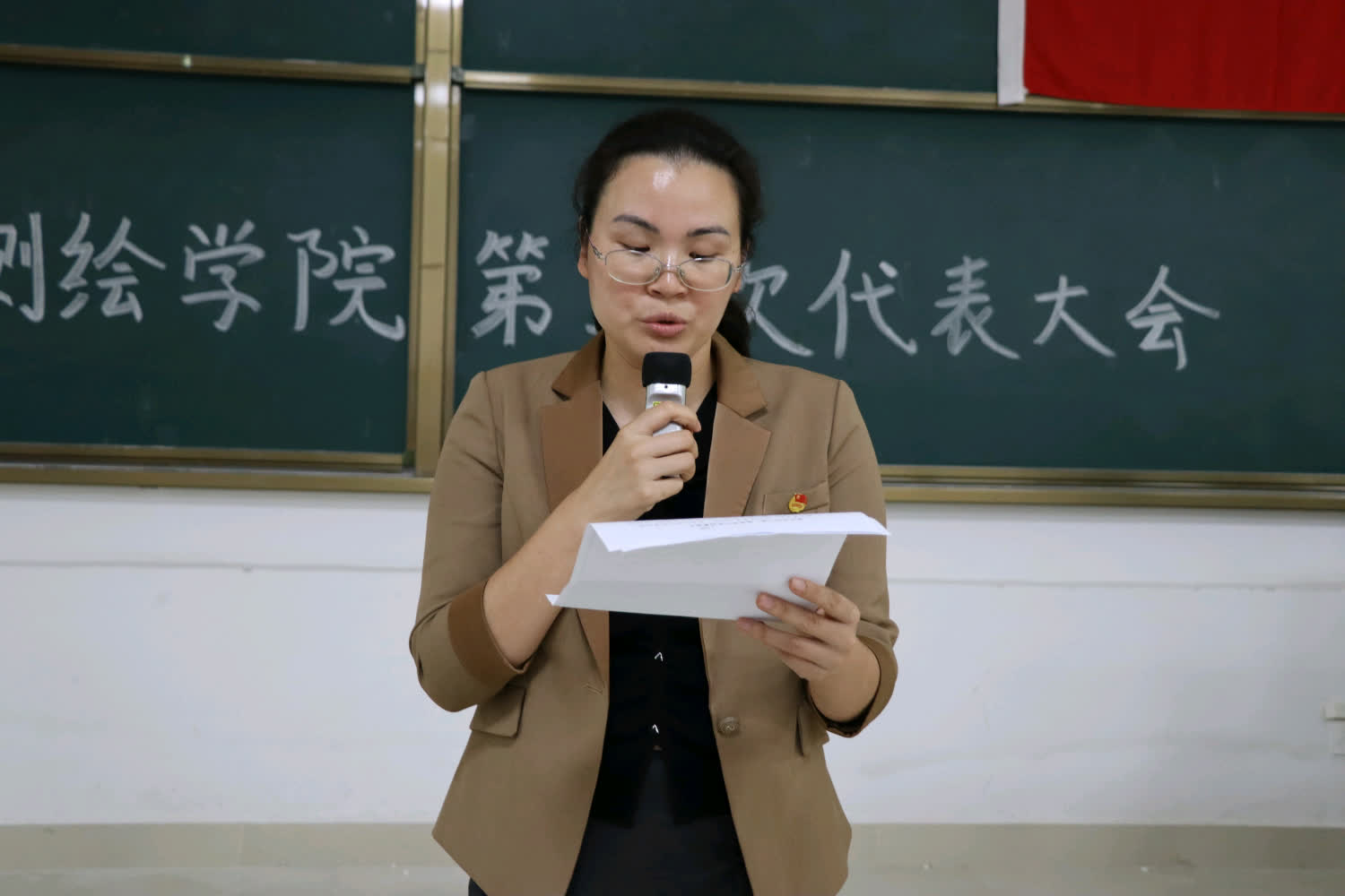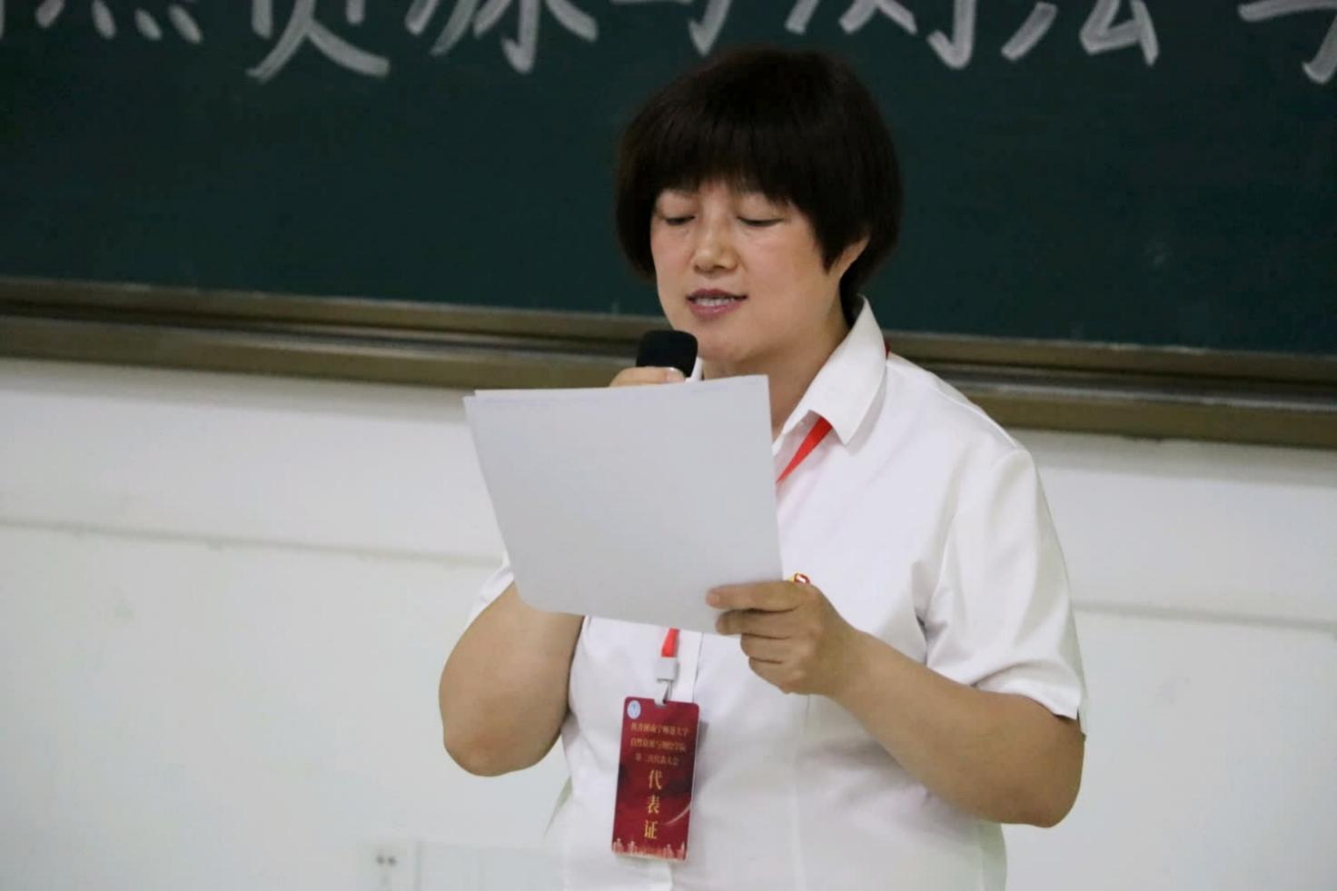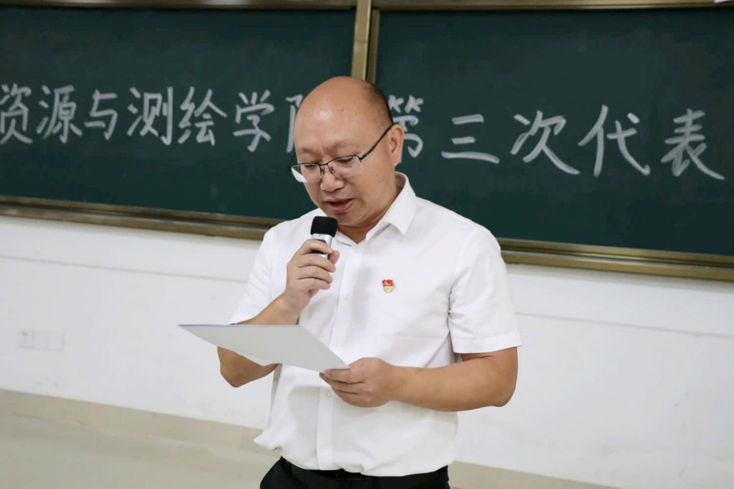 自然资源与测绘学院团委张书记作第二届团委工作报告,回顾和总结过去五年自测学院团委的工作和不足,明确今后五年的工作思路和主要任务。