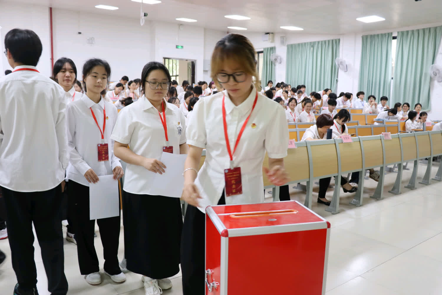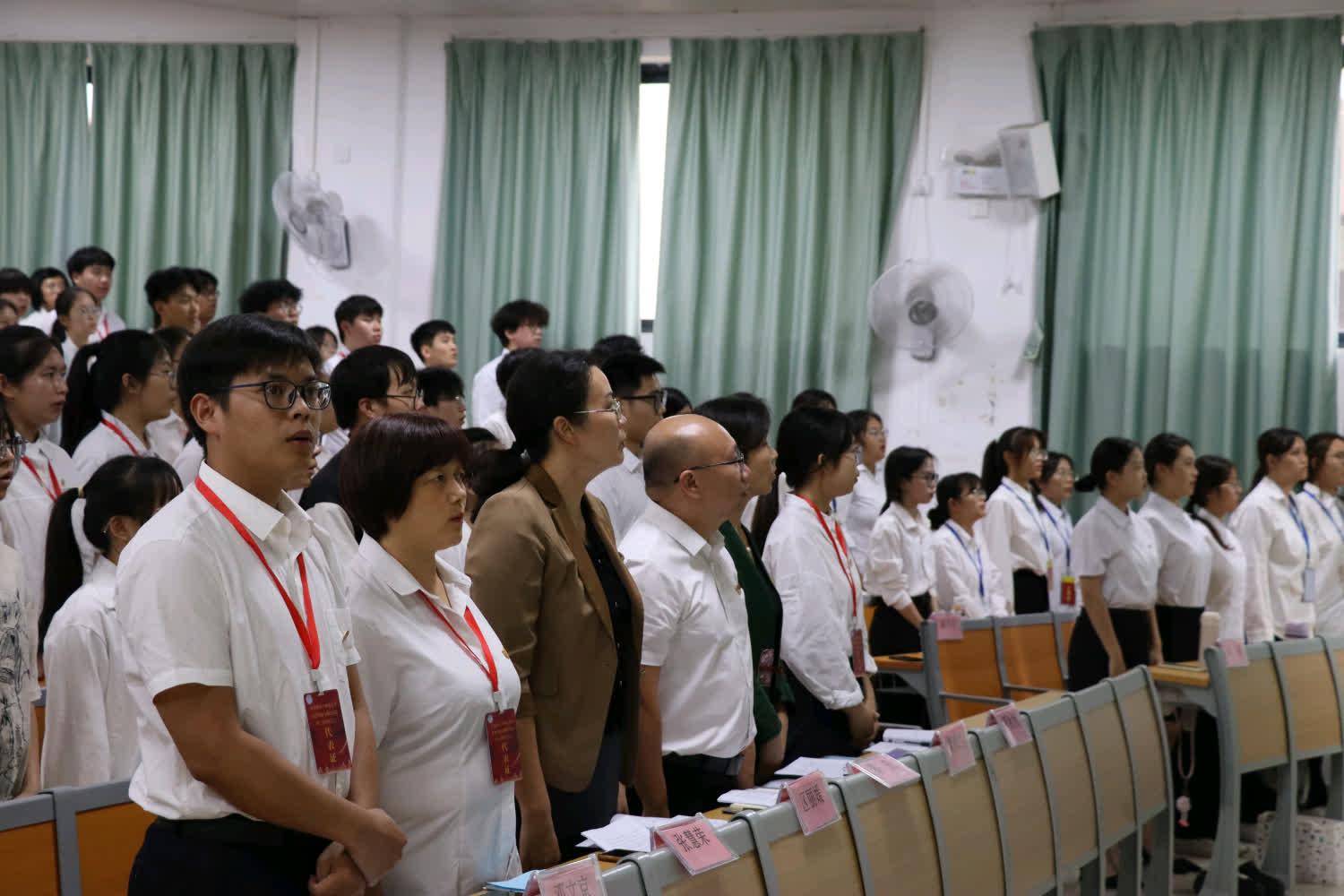 经与会代表的民主选举,张慧荣、邓文京、罗秋怡、黄琴、奚经透、覃慧婷、黄建红、尹伊萍、邓雅君、谢佳欣、欧阳静仪当选第三届团委委员。接着,罗秋怡老师宣读倡议书,邓文京老师致闭幕词。最后,全体起立奏唱《中国共产主义青年团团歌》,本次会议到此结束。