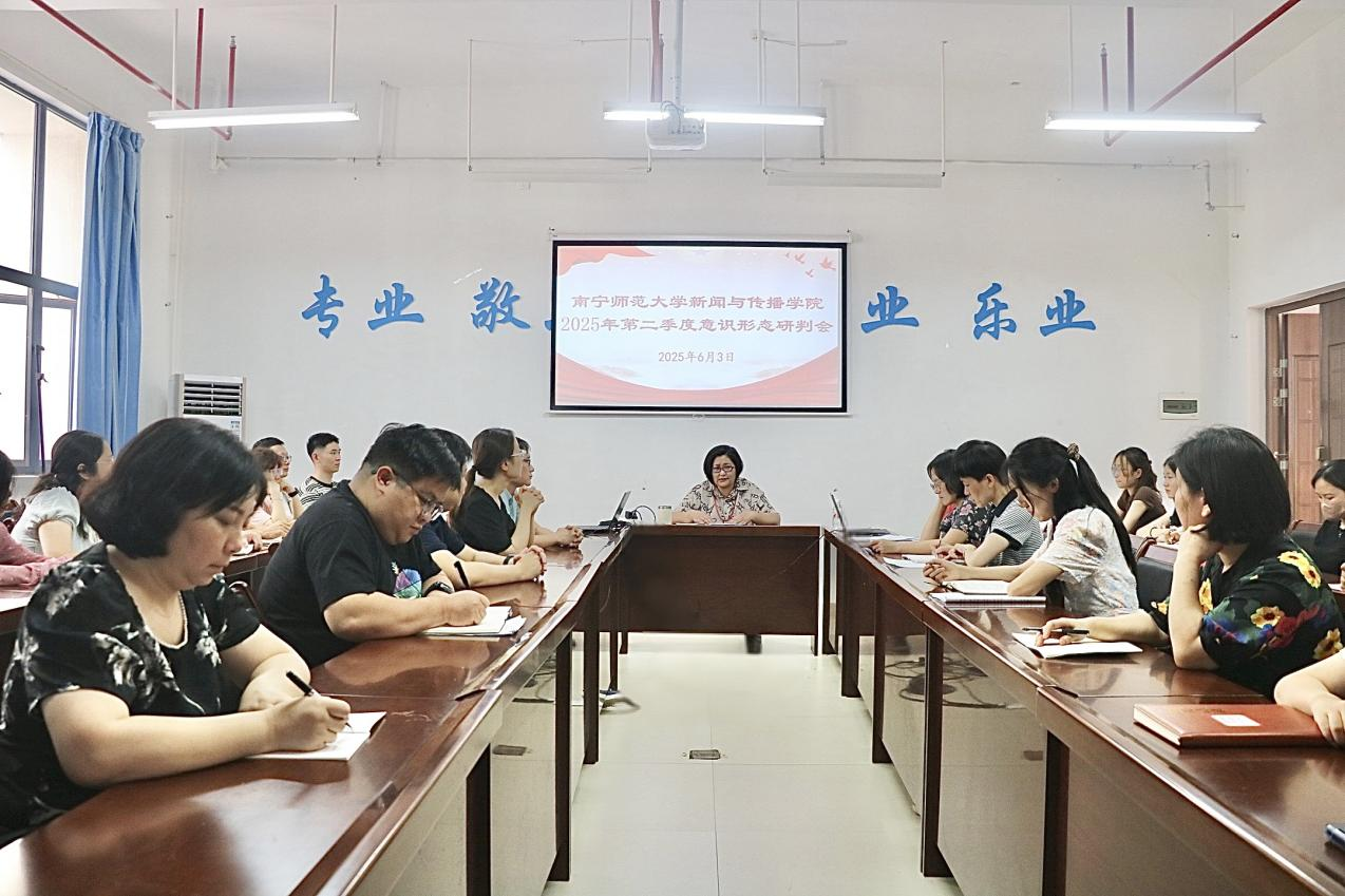 6月3日下午,新闻与传播学院在理综楼304会议室召开2025年第二季度意识形态工作研判会。学院领导班子、党委委员、系主任和班主任参加会议,会议由学院党委书记聂卉主持。
