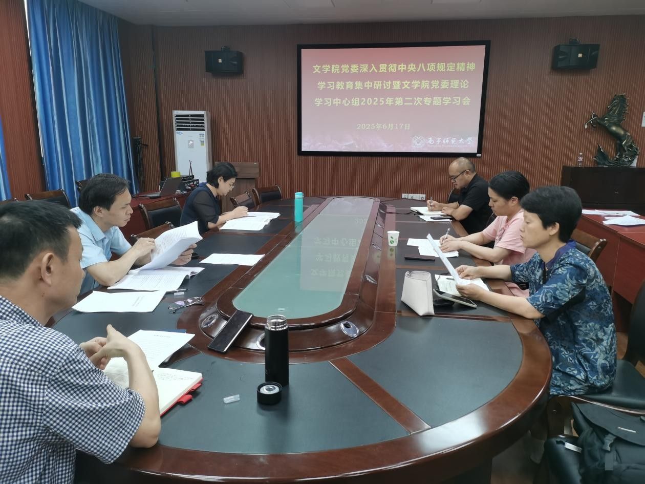 根据华体会平台统一部署,2025年6月17日下午,文学院党委在五合校区召开深入贯彻中央八项规定精神学习教育集中研讨暨文学院党委理论学习中心组2025年第二次专题学习会,文学院全体党委委员参会。