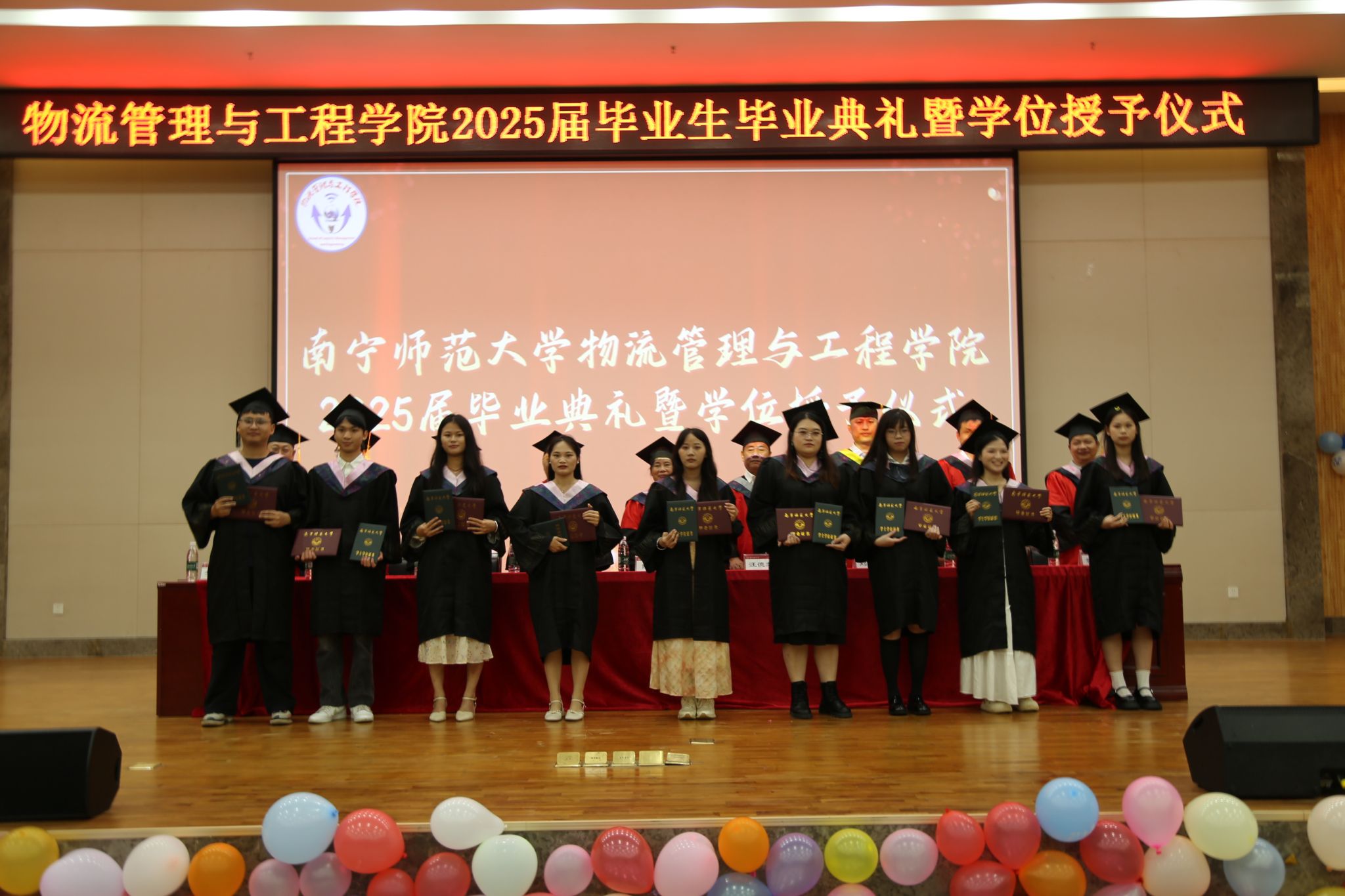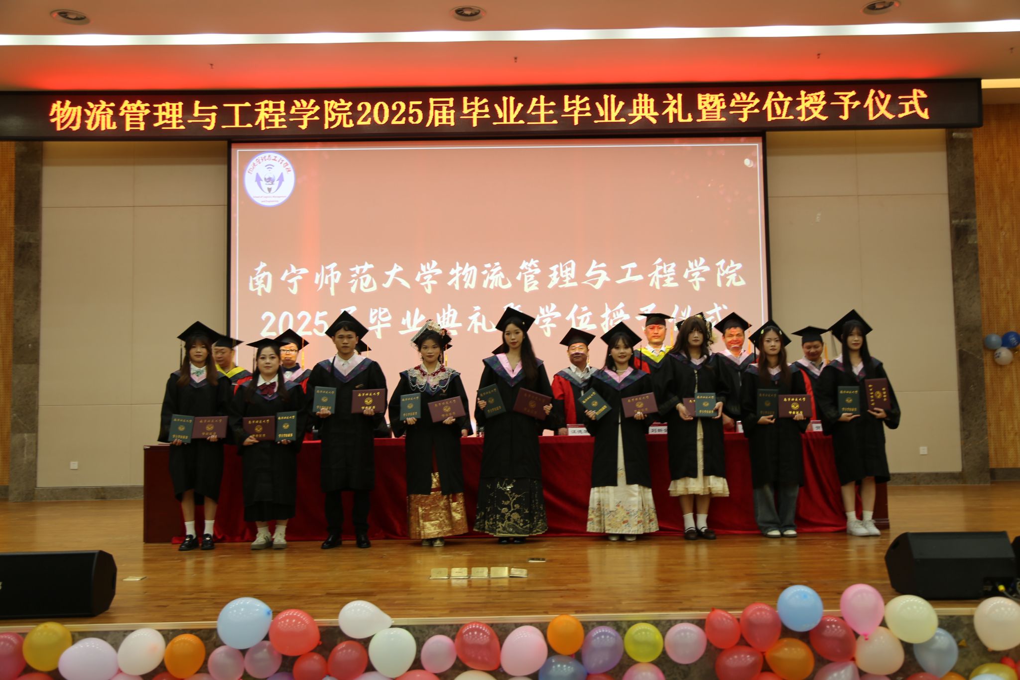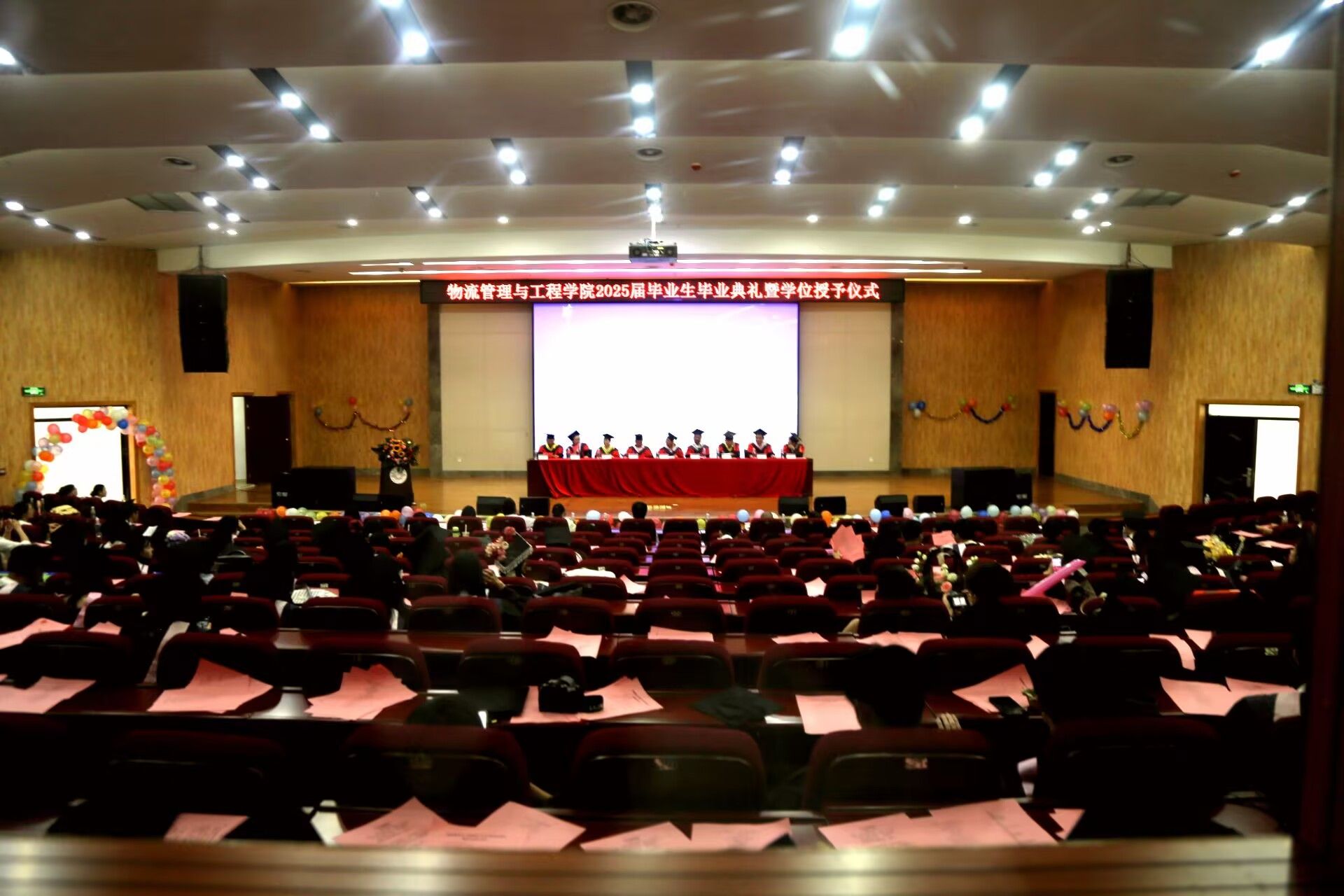 6月21日上午,物流管理与工程学院于武鸣校区图书馆报告厅举办2025届毕业生毕业典礼暨学位授予仪式。学院党委书记陈兵、院长汪德荣、党委副书记黄宇、副院长蔡宏果、刘新全、黎英、院长助理李梅、物流管理系主任贺世红、物流工程系主任于晓默、信息工程系主任黄海清、教师代表、学位评定委员会委员、家长代表及2025届毕业生参加典礼,共同见证这一难忘且温馨的时刻。毕业典礼由学院红蜻蜓艺术团胡静萱同学主持。
