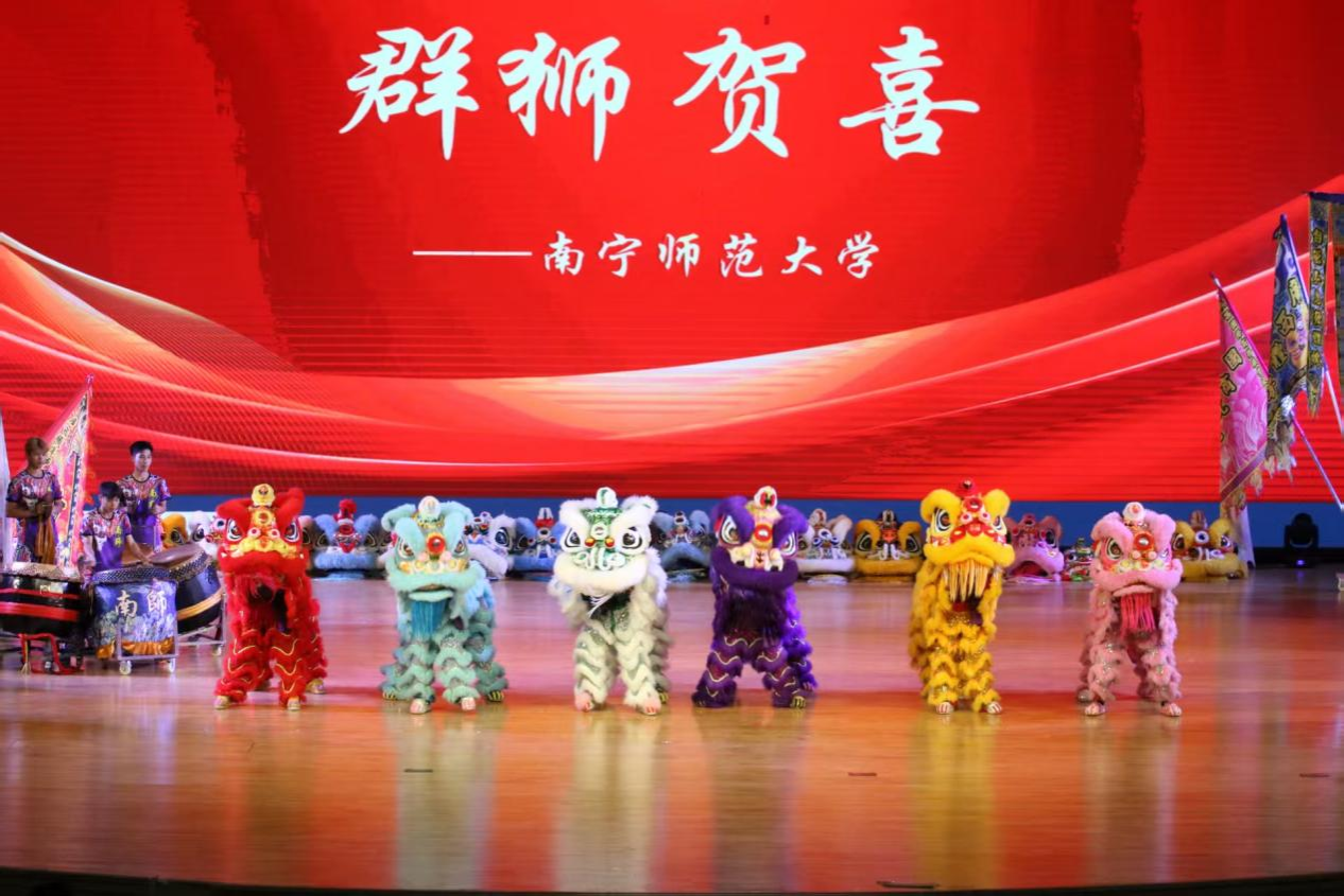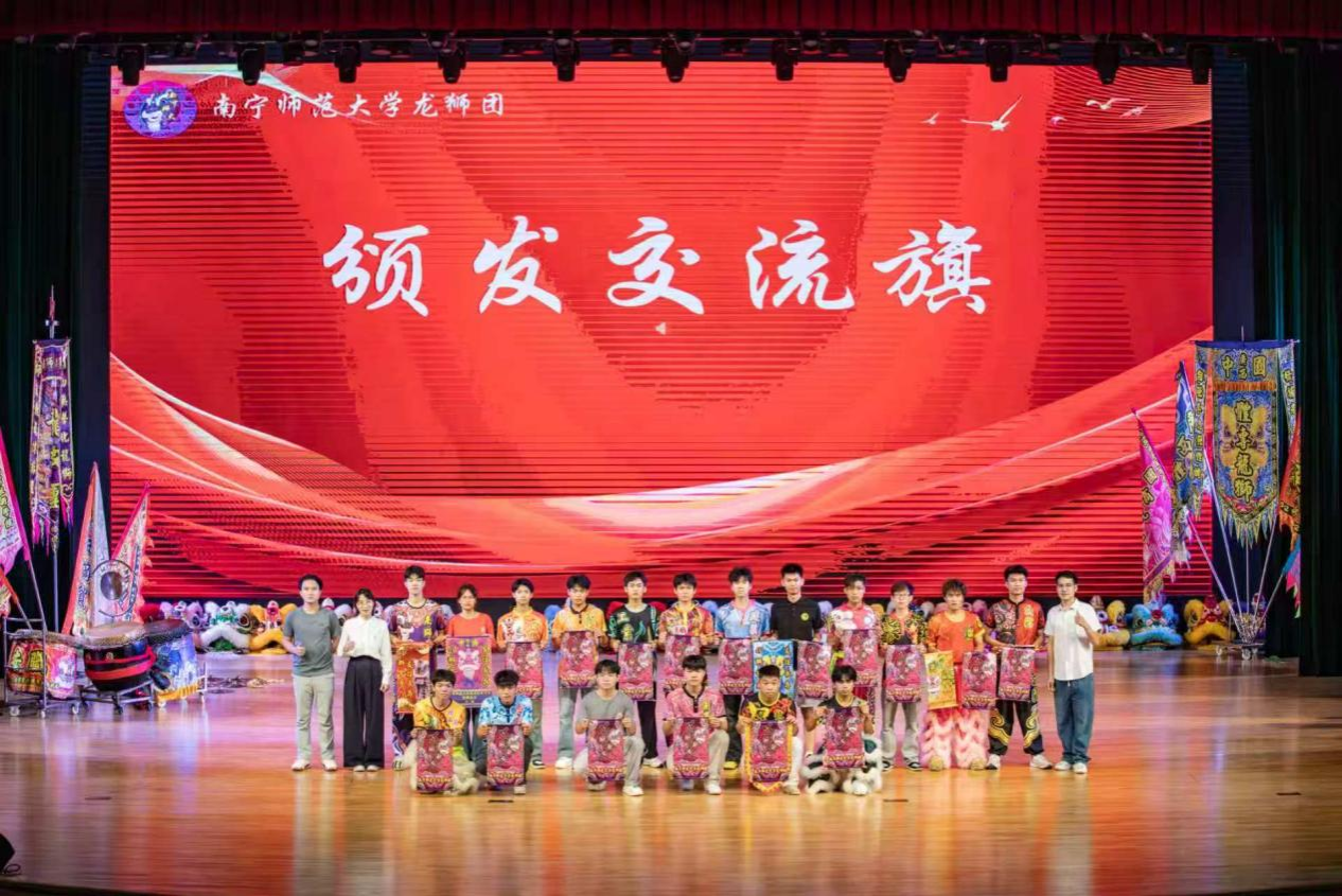 活动在各高校送来的祝贺视频中拉开帷幕,龙狮团指导老师农云霞发表致辞,为这场汇聚传统魅力与创新活力的盛会送上美好祝愿。在交流展示环节,来自15个高校的龙狮团逐一上台展示技艺,各龙狮团演员们配合默契,伴随激昂的锣鼓,醒狮灵动跃起。它们时而威风凛凛,精准地“采青”,辗转腾挪,展现出高超的技艺;时而俏皮互动,摇头晃脑、眨眼摆步,憨态可掬的模样引得现场阵阵欢笑,让大家直观感受到醒狮文化的独特魅力与活力。最终各高校龙狮团都圆满完成了演出,开幕仪式的高潮定格在情意深厚的交流旗赠礼时刻。华体会平台(中国)龙狮团与参加本次活动的各高校龙狮团相互赠送了精心制作的交流旗,这份礼物不仅是各高校龙狮团友谊的见证,更承载着对龙狮文化传承的美好祝愿。金鼓齐鸣声中,华体会平台2025年龙狮文化节开幕式暨驻邕高校龙狮交流会圆满落下帷幕。