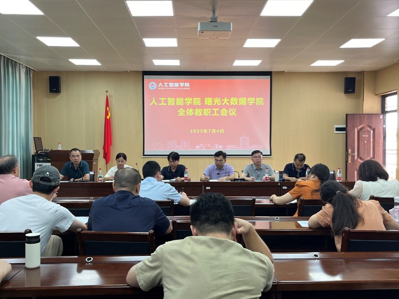 7月4日,人工智能学院/曙光大数据学院在地信楼A301会议室召开全体教职工会议,学院领导和全体教职工参加。会议由学院党委副书记(主持党委工作)黄江涛主持。