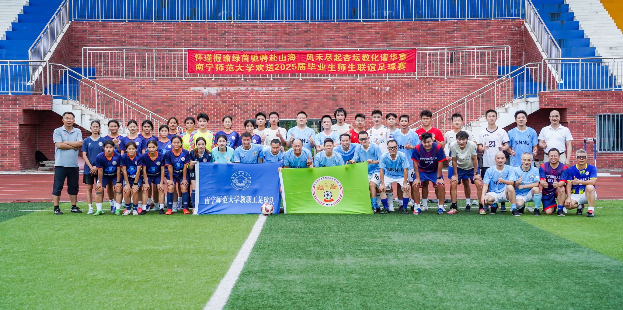 为欢送2025届毕业生并为华体会平台女足参加自治区校园足球联赛壮行,校教职工足球协会在武鸣校区开展师生联谊足球系列赛。本次足球联谊赛从6月中旬到7月中旬,历时一个月。