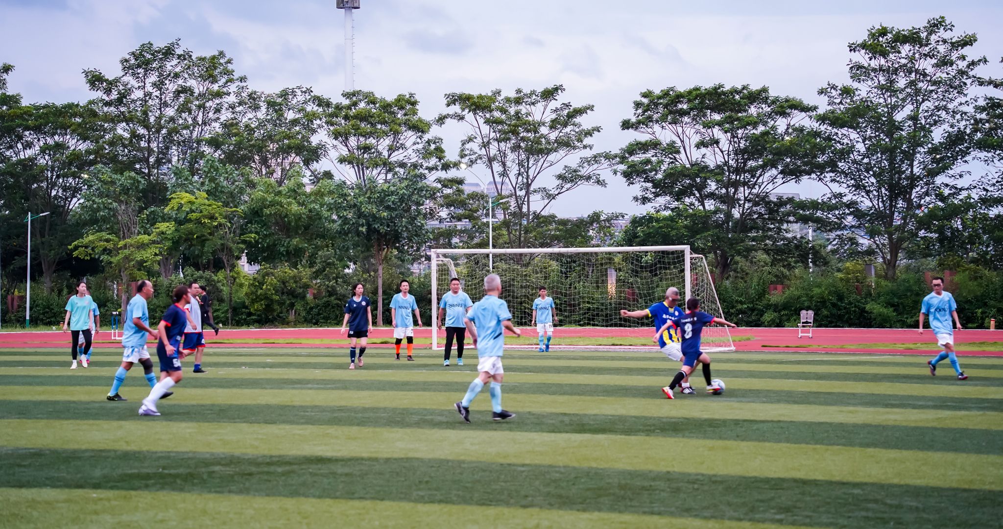 联谊赛不仅是技艺的切磋,更成为了师生间打破课堂界限、用足球语言对话的独特课堂。比赛期间精彩不断,既有电光火石的快速突破,也有步步为营的防守布阵,场下观众掌声、欢呼声此起彼伏,将绿茵场化作一片激情澎湃的海洋。