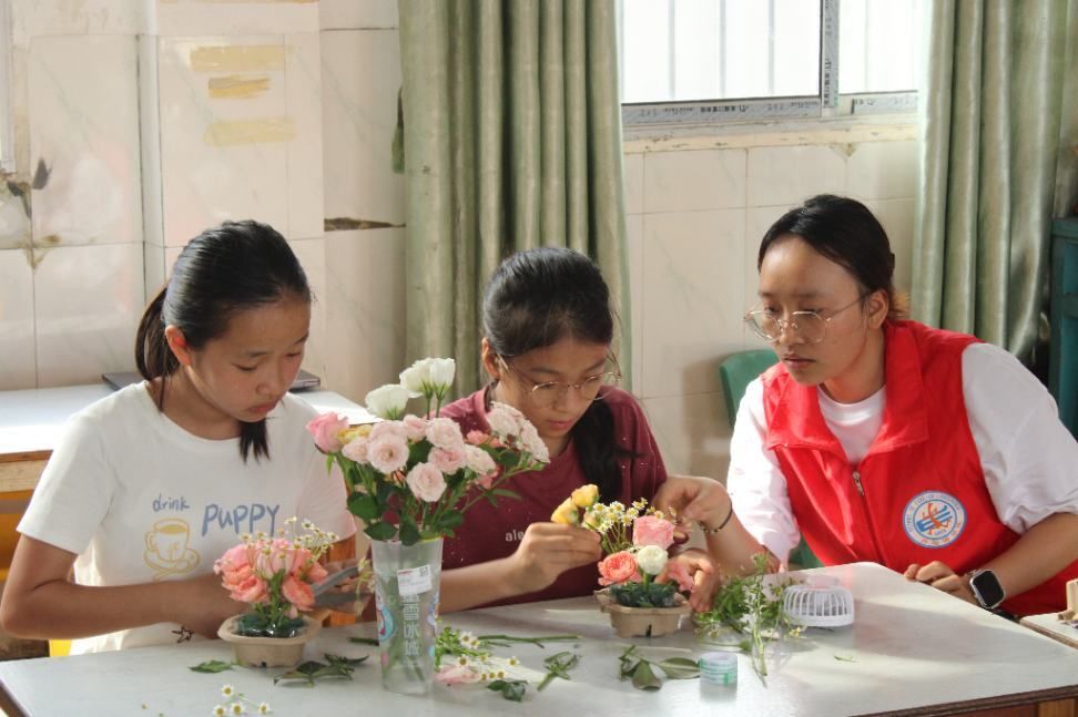 下午,非遗纸绣球课程开启。志愿者将非遗与英语结合,讲解绣球历史渊源和文化寓意,分发材料并示范制作技巧。在志愿者的耐心指导下,孩子们成功制作纸绣球,满是成就感。