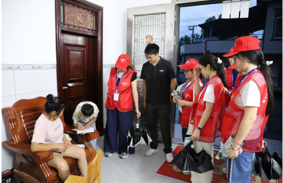 驻村第一书记巫福星对实践团来到天宝村开展支教和调研活动表示欢迎,并向实践队介绍村内情况,同时针对乡村环境特点,着重强调“勿私自下水”的安全纪律,守护团队人身安全。傍晚时分,实践团队在巫福星书记的带领下走进村落,逐户走访宣传此次“三下乡”活动内容,热情招募当地学生参与暑期夏令营活动。实践队员的真诚与热情感染着孩子们,孩子们纷纷在报名表上写下自己的名字,“情暖童心”的种子在乡土间悄然播撒。