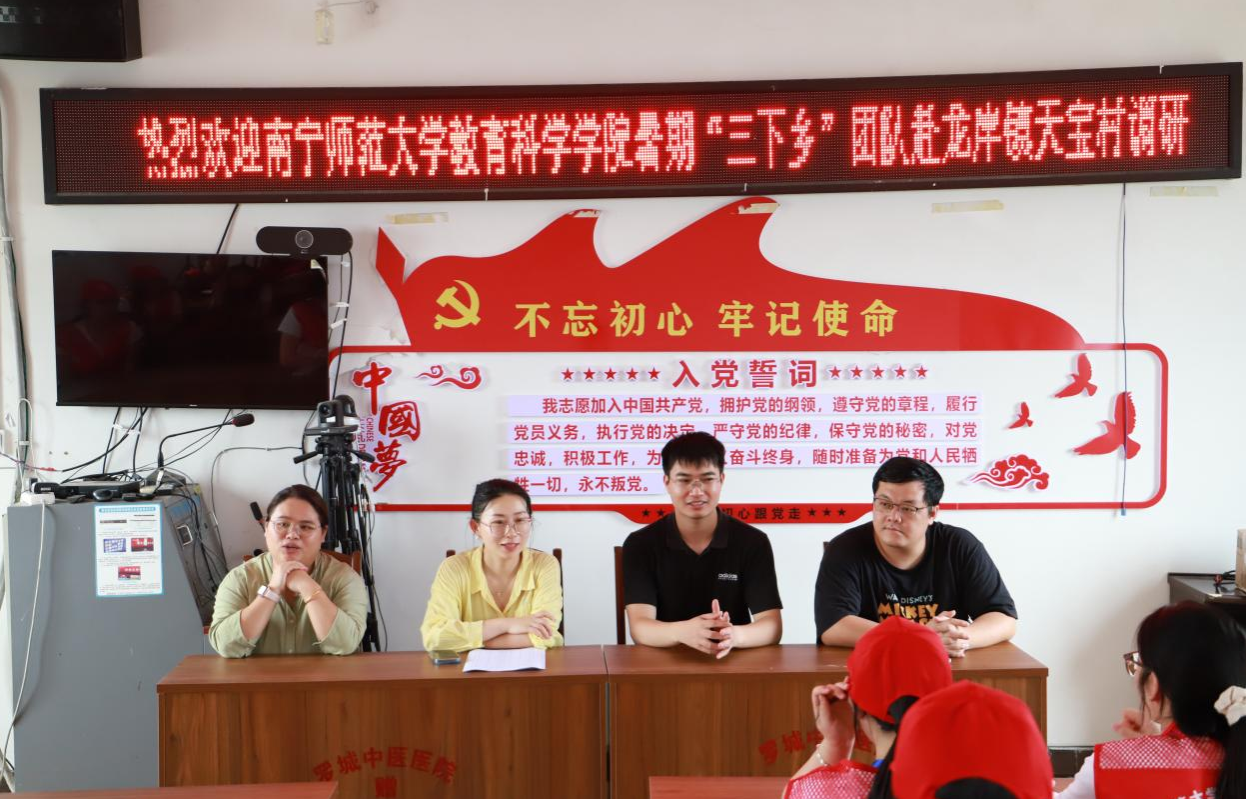 7月13日早上7点,教育科学学院2025年暑期“三下乡”志愿服务团队在学院团委书记蒋欢老师和辅导员老师带领下,满怀期待地奔赴实践地点——广西河池市罗城仫佬族自治县龙岸镇天宝村,正式开启以“情暖童心护成长,爱润乡土助振兴”为主题的暑期社会实践活动。