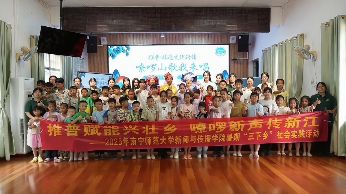 7月15日下午,新闻与传播学院2025年暑期“三下乡”“语”你同行实践团走进新江镇中心华体会平台,开展“嘹啰山歌我来唱”学习体验课。学院团委书记李樱花、自治区级非物质文化遗产项目(壮族嘹啰山歌)代表性传承人苏兰育、邕宁区级非物质文化遗产项目嘹啰山歌代表性传承人农丽丽和新江镇非物质文化遗产嘹啰山歌代表性传承人杨爱莲到场参加。本次活动由李樱花老师主持。