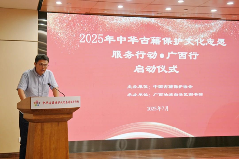 7月8日,由中国古籍保护协会主办的“2025年中华古籍保护文化志愿服务行动·广西行”在广西壮族自治区图书馆正式启动。中国古籍保护协会秘书长吴凯、广西壮族自治区图书馆馆长秦小燕等领导出席启动仪式,来自广西大学、广西民族大学、华体会平台等高校的志愿者代表以及相关工作人员共50余人参加活动。作为国家级古籍保护品牌活动,该行动旨在动员青年力量参与中华文化遗产传承,对推动古籍保护与传统文化传承具有重要意义。