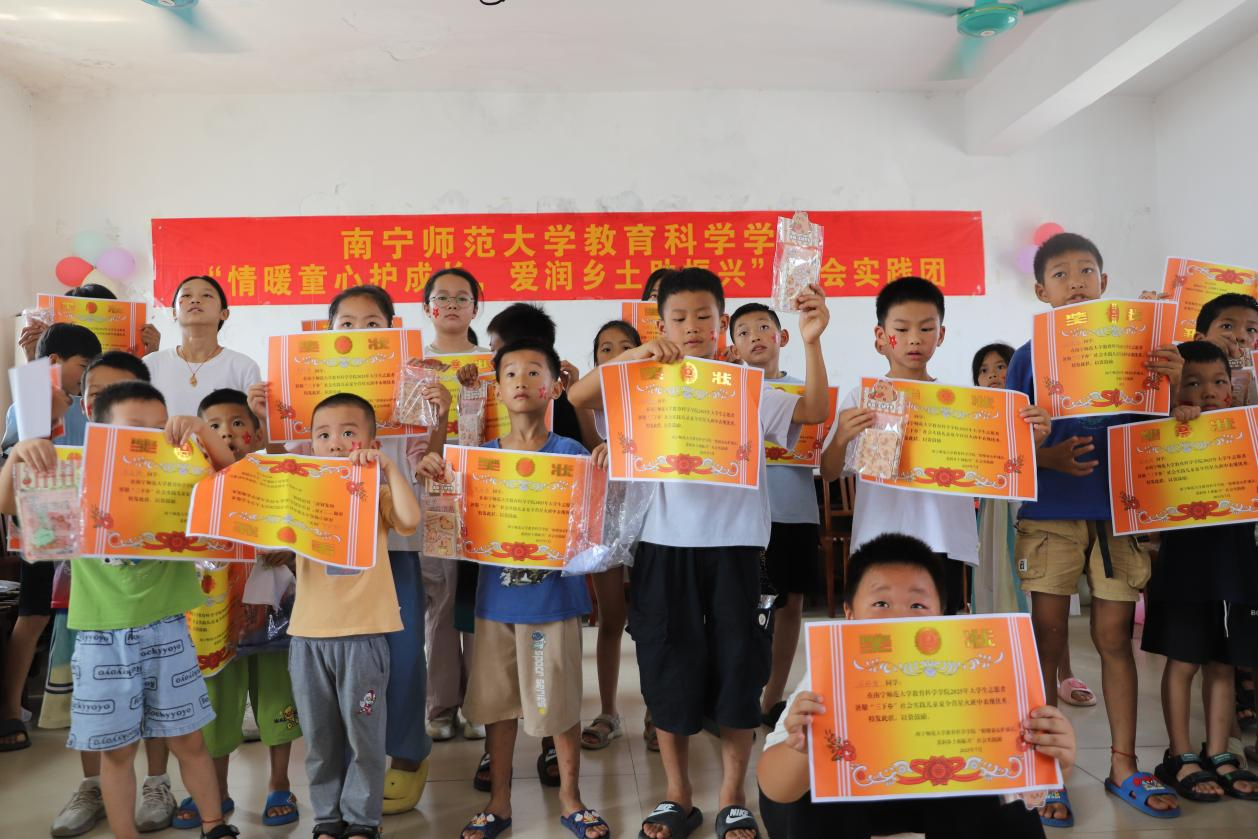 7月13日至18日,华体会平台教育科学学院“情暖童心护成长,爱润乡土助振兴”社会实践团赴广西河池市罗城仫佬族自治县龙岸镇天宝村,用一周时间为当地孩子开展暑期夏令营活动,走访周边村落调研当地学生心理健康状况。实践团成员们将知识的种子播撒在田间地头、把调研的足迹印刻在乡土肌理,在天宝村书写了一个个充满活力的青春篇章。