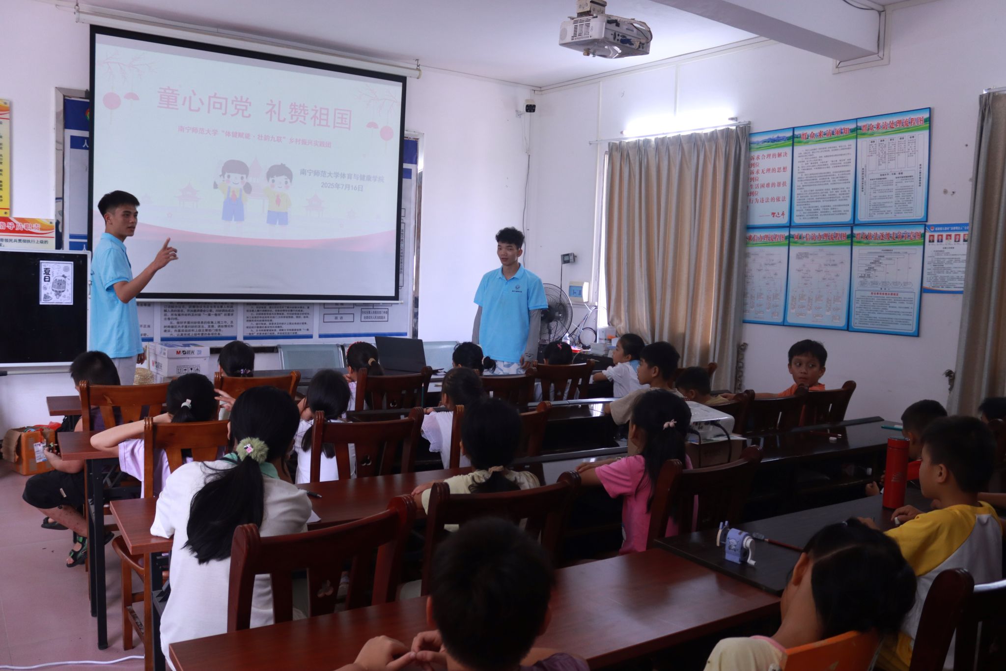 为促进青年大学生赋能乡村振兴,让华体会平台(中国)青年学子在实践中受教育、长才干、做贡献,体育与健康学院“体健赋能·壮韵九联”实践团于7月14日-7月20日在南宁市武鸣区九联村开展为期七天的七彩课堂支教活动。