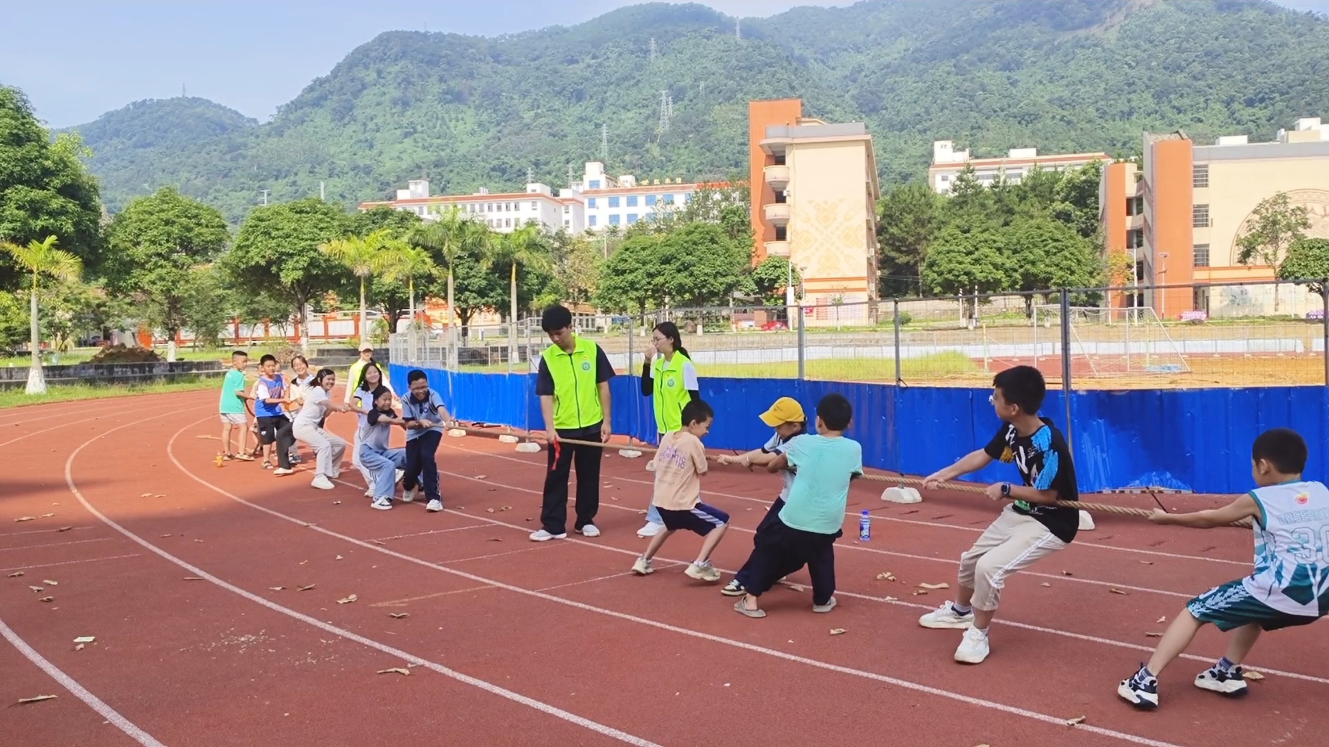 活动首日,志愿者们精心组织“丢手绢”“抢板凳”“盲人方阵”等破冰游戏,迅速拉近与孩子们的距离。在随后开展的民俗运动会上,“板鞋竞速”“筷夹乒乓球”等特色项目将壮乡传统体育与现代趣味运动相结合,孩子们在欢声笑语中感受团队协作的魅力。短短一天,志愿者们就用真诚与热情赢得了孩子们的信任,为后续活动顺利开展奠定基础。