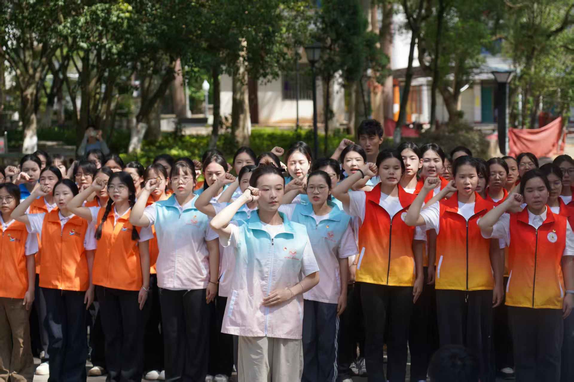 (在革命烈士纪念碑前进行入团宣誓)