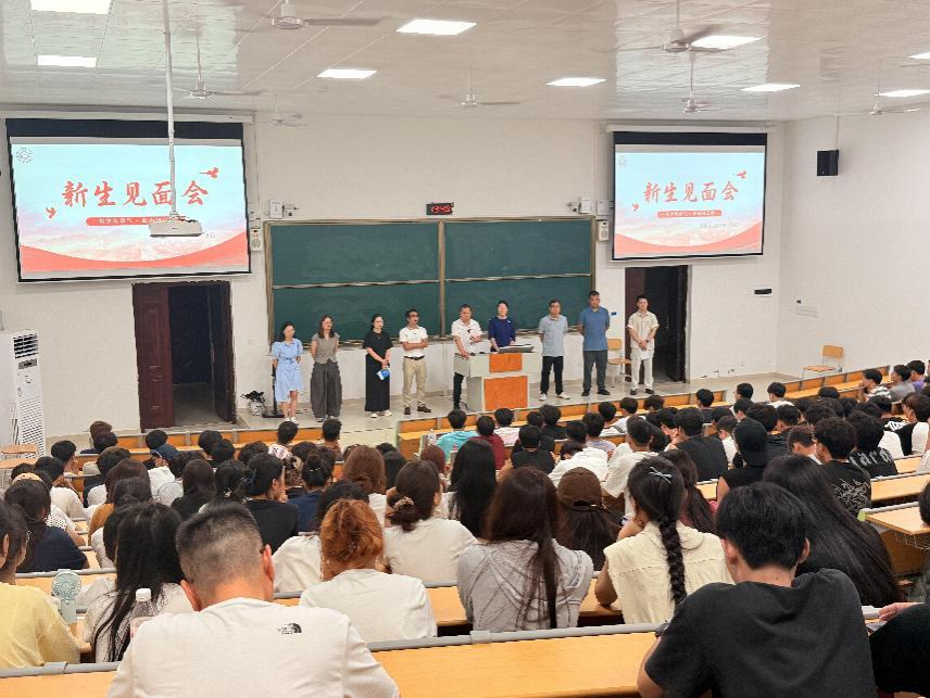 学院领导、辅导员与各班助理班主任也深入迎新一线,亲切慰问新生及家长,细致解答各类疑问。当晚七时,学院领导专程与2025级新生见面交流,传递学院的深切关怀与殷切期望。随后,各班级有序召开新生主题班会,通过互动游戏、自我介绍等形式迅速拉近同学距离。班主任围绕校园生活、学业规划与安全教育等内容进行了详细介绍。