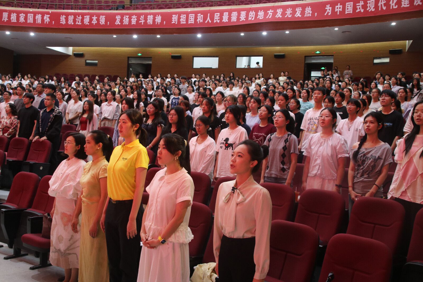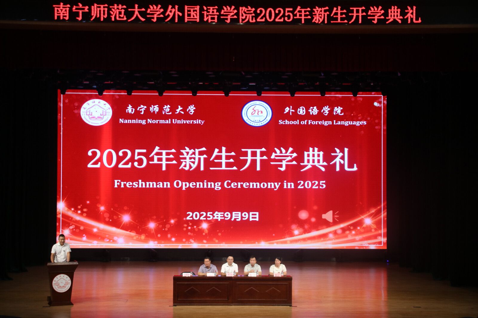9月9日上午,华体会平台外国语学院于武鸣校区音舞楼千人演播厅举行2025级新生开学典礼。外国语学院党委书记苏华、院长陈光伟、副院长张晓鹏、副院长蒙岚、党委副书记刘晖晖、学院部分教师、学工办全体老师以及2025级全体新生共同出席。本次典礼由刘晖晖副书记主持。