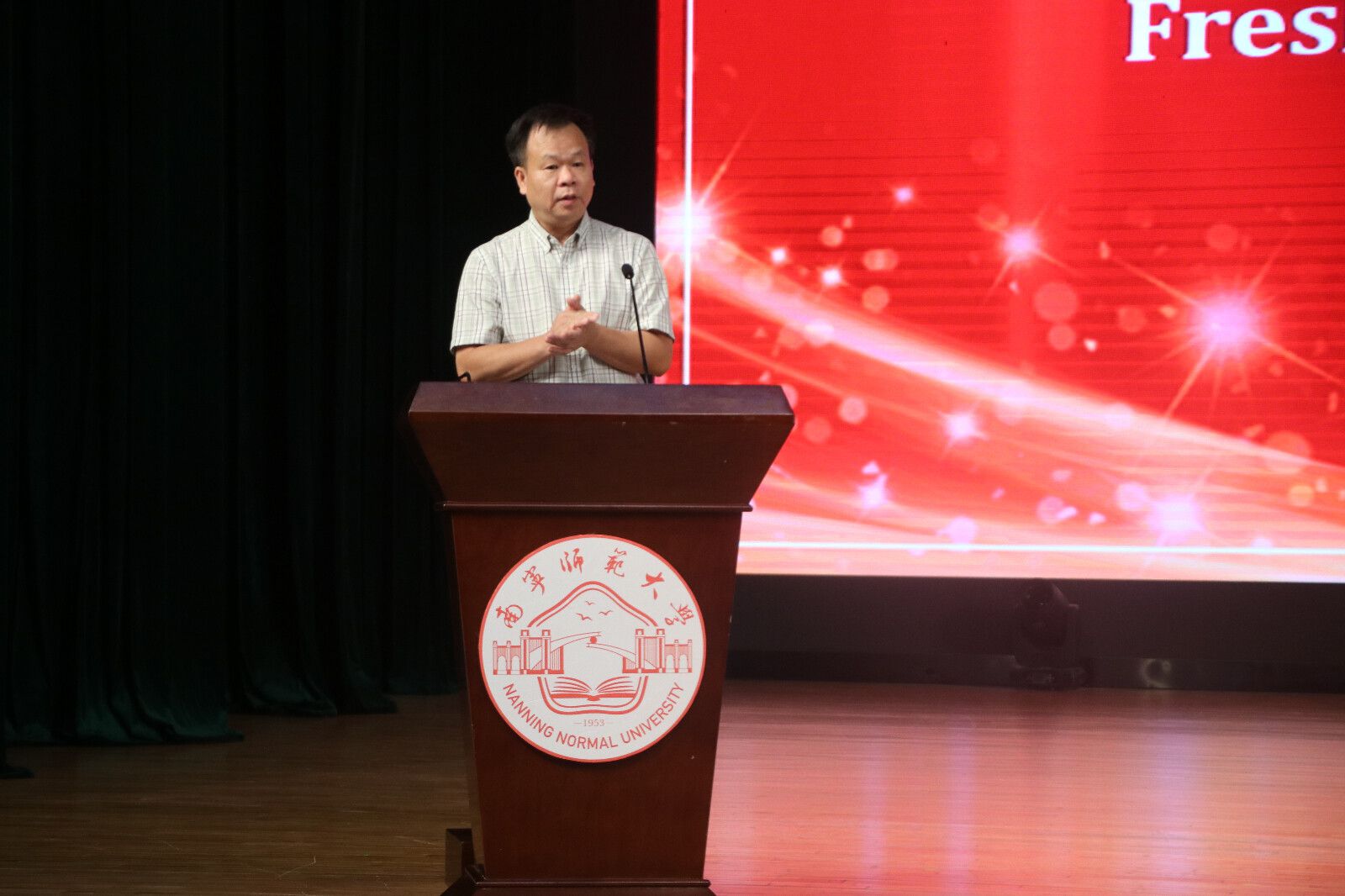 典礼伊始,刘晖晖副书记逐一介绍了出席本次开学典礼的学院领导与老师,全场以热烈的掌声表示欢迎。庄严的国歌奏唱仪式后,陈光伟院长致辞。首先,他代表学院向全体新生致以诚挚欢迎,并介绍了学院的发展历程、专业特色和师资力量。接着,陈院长希望新生们珍视大学生活,夯实语言基础,拓宽国际视野,努力成长为兼具家国情怀与全球竞争力的外语人才。对此,他提出四点期望:一是以博观约取之心,学会学习,热爱读书;二是以矢志不渝之力,学会坚持,立志成才;三是以清醒自持之志,学会自律,热爱生活;四是以张弛有度之法,学会放松,强身健脑。陈院长的讲话情真意切而又极富感染力,为新生指明了未来的奋斗方向。