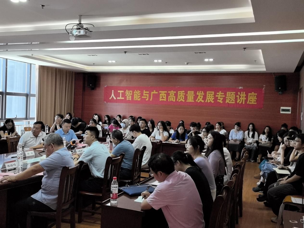 本次专题讲座是广西壮族自治区社会科学界联合会立项的社会智库专题讲座之一,为了进一步拓展深化广西社科界在人工智能领域的研究成果,充分发挥社会智库在推动区域发展中的重要作用。通过本次讲座系统梳理了人工智能技术在推动广西产业结构优化、区域协同和面向东盟的国际合作等方面的重要作用,既有理论高度,又紧密结合广西发展实际,对强化学科交叉与研究应用具有积极意义。