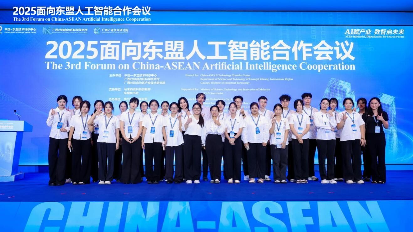 9月16日,2025面向东盟人工智能合作会议在广西南宁成功举办。本次会议聚焦人工智能前沿议题,由中国—东盟技术转移中心、广西壮族自治区科学技术厅、广西壮族自治区产业技术研究院联合主办,吸引中国与东盟国家政产学研界超千名代表参会。人工智能学院选派5名学生志愿者、1名带队教师和4名参会教师代表参加。