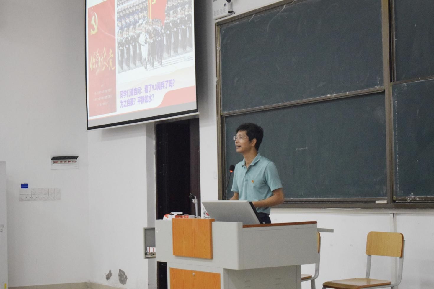 为加强大学生思想政治引领,增进2025级新生对中国共产党的认识,2025年9月26日,自然资源与测绘学院专职组织员彭定新老师为全体2025级新生讲授“入党第一课”,引导广大新生筑牢理想信念根基,鼓励他们主动向党组织靠拢,迈好大学第一步。