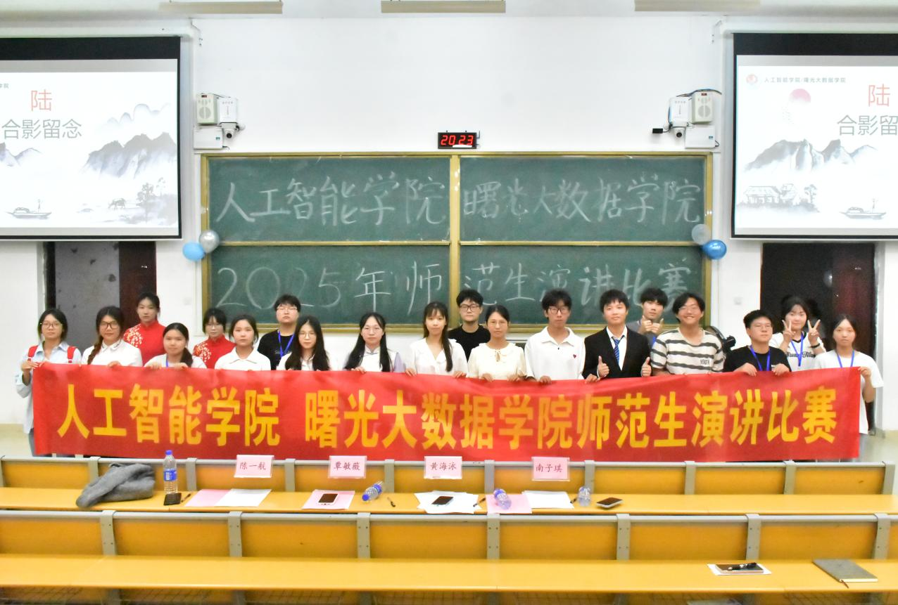 9月22日,人工智能学院在实验二号教学楼B108教室举办了2025年师范生演讲比赛院级选拔赛。比赛邀请辅导员黄海泳、覃敏薇、团委副书记(学生)南子琪和主席团成员陈一航担任评委。