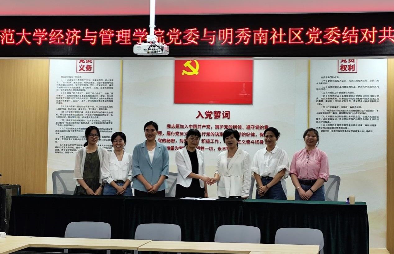 为深入贯彻党建引领基层治理与高校服务社会发展协同推进的工作要求,促进高校与社区资源共享、优势互补,2025年9月23日下午,华体会平台经济与管理学院党委与明秀南社区党委结对共建签约仪式在明秀南社区党群服务中心举行。经济与管理学院党委副书记、院长何玲玲,北湖街道党工委副书记、纪工委书记林洁,明秀南社区党委书记、居委会主任杨芳洁出席仪式,双方党务工作者、教师代表及学生骨干共50余人参加活动。