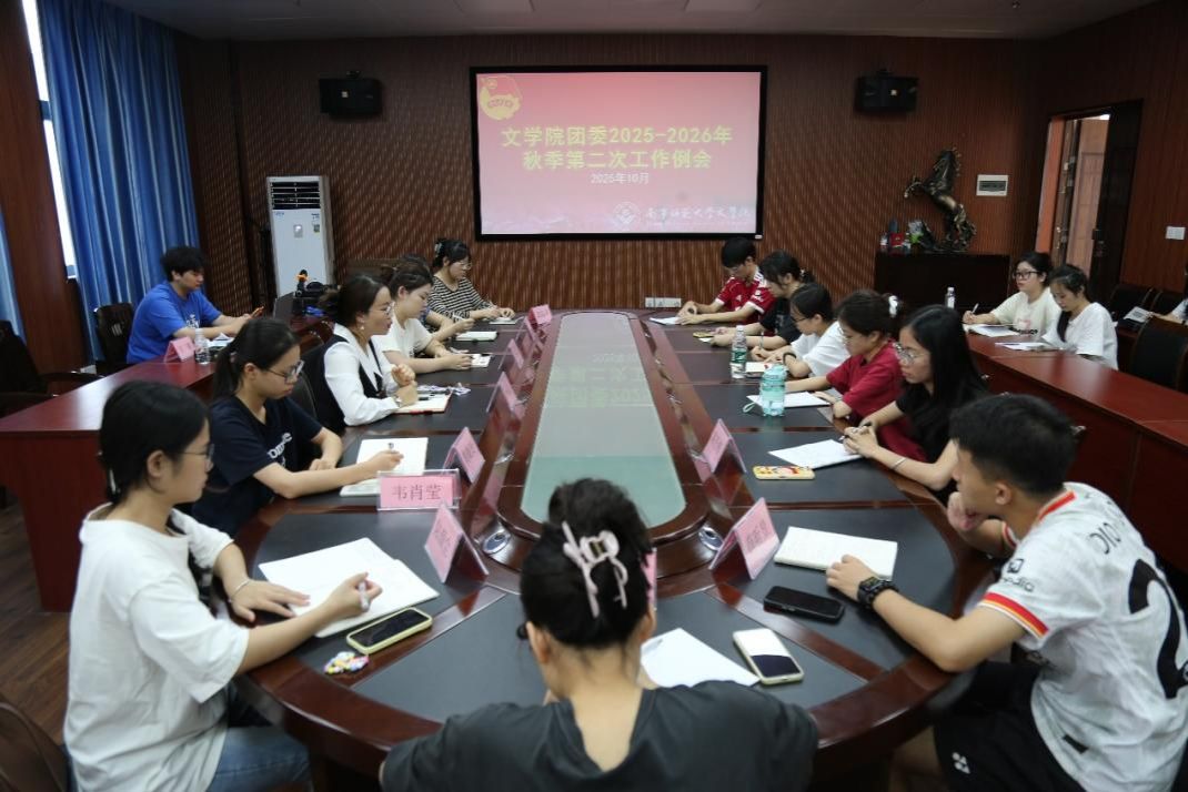 2025年10月13日下午,文学院团委学生会于理综404会议室召开2025年秋季学期第二次工作例会。本次会议由团委书记钟振花主持,辅导员罗茜、韦肖莹,文学院团委学生会各常委、部门负责人参加。