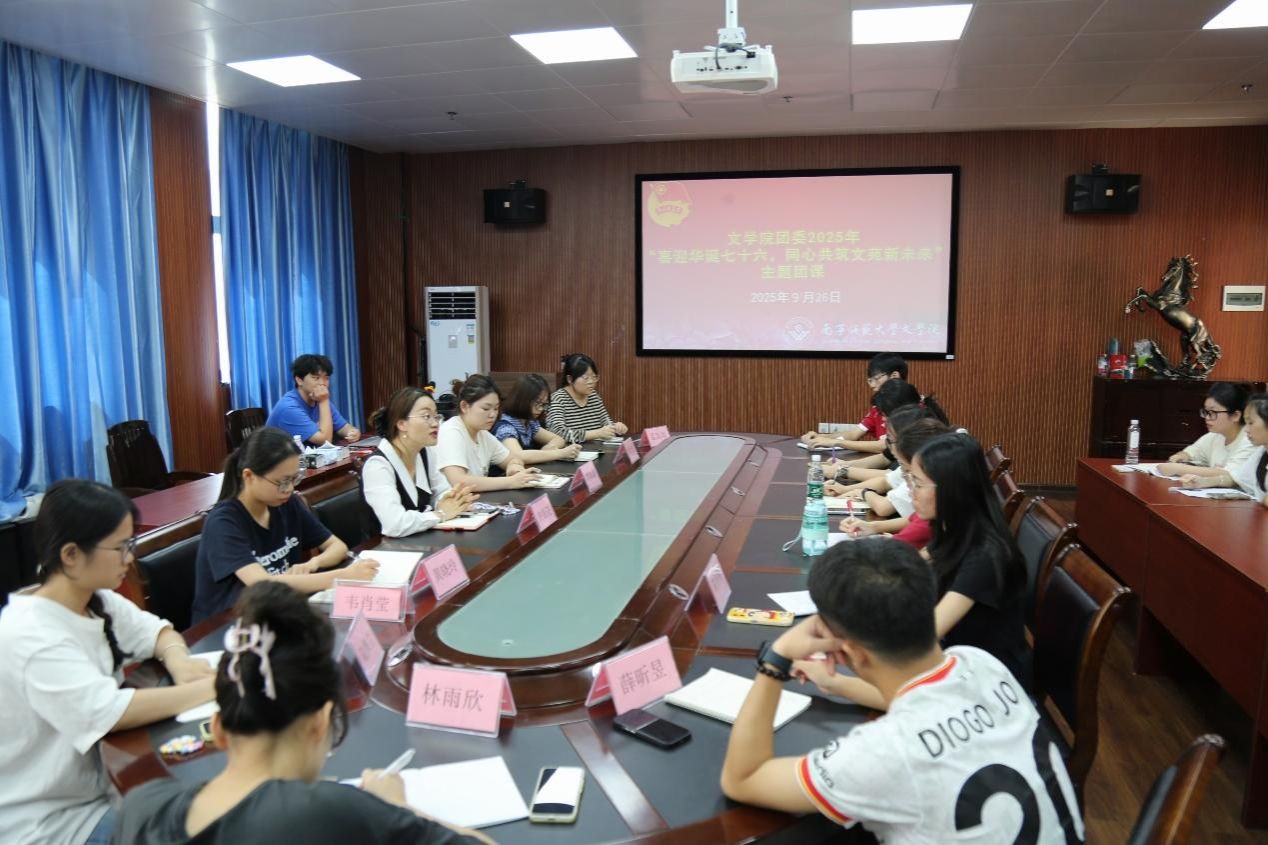 为庆祝祖国华诞,厚植青年学子爱国情怀,凝聚奋进力量。9月26日,华体会平台文学院团委于理综404开展“喜迎华诞七十六,同心共筑文苑新未来”主题团课。本次团课由文学院团委书记钟振花老师主讲,团委学生会常委主席成员、各部门负责人参加。