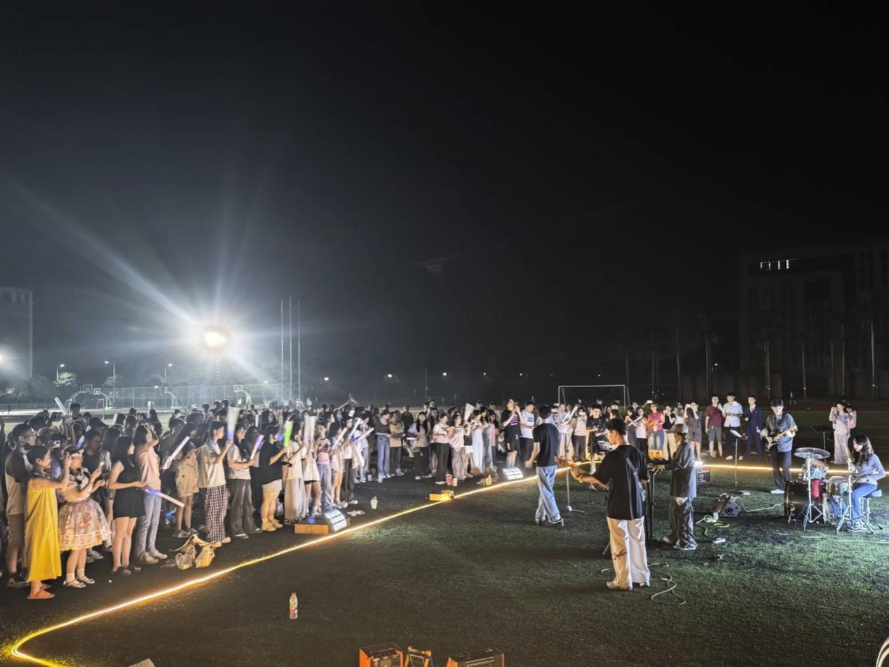 为深入落实立德树人根本任务,扎实推进美育浸润行动,10月18日晚,由校团委主办、新闻与传播学院承办的“周末好时光·一起音乐吧”第二期美育实践活动在五合校区风雨足球场顺利举行。作为五合校区首场美育实践活动,本场演出内容丰富、形式多元,吸引了数百名师生驻足观看,沉浸式体验一场青春音乐盛宴。