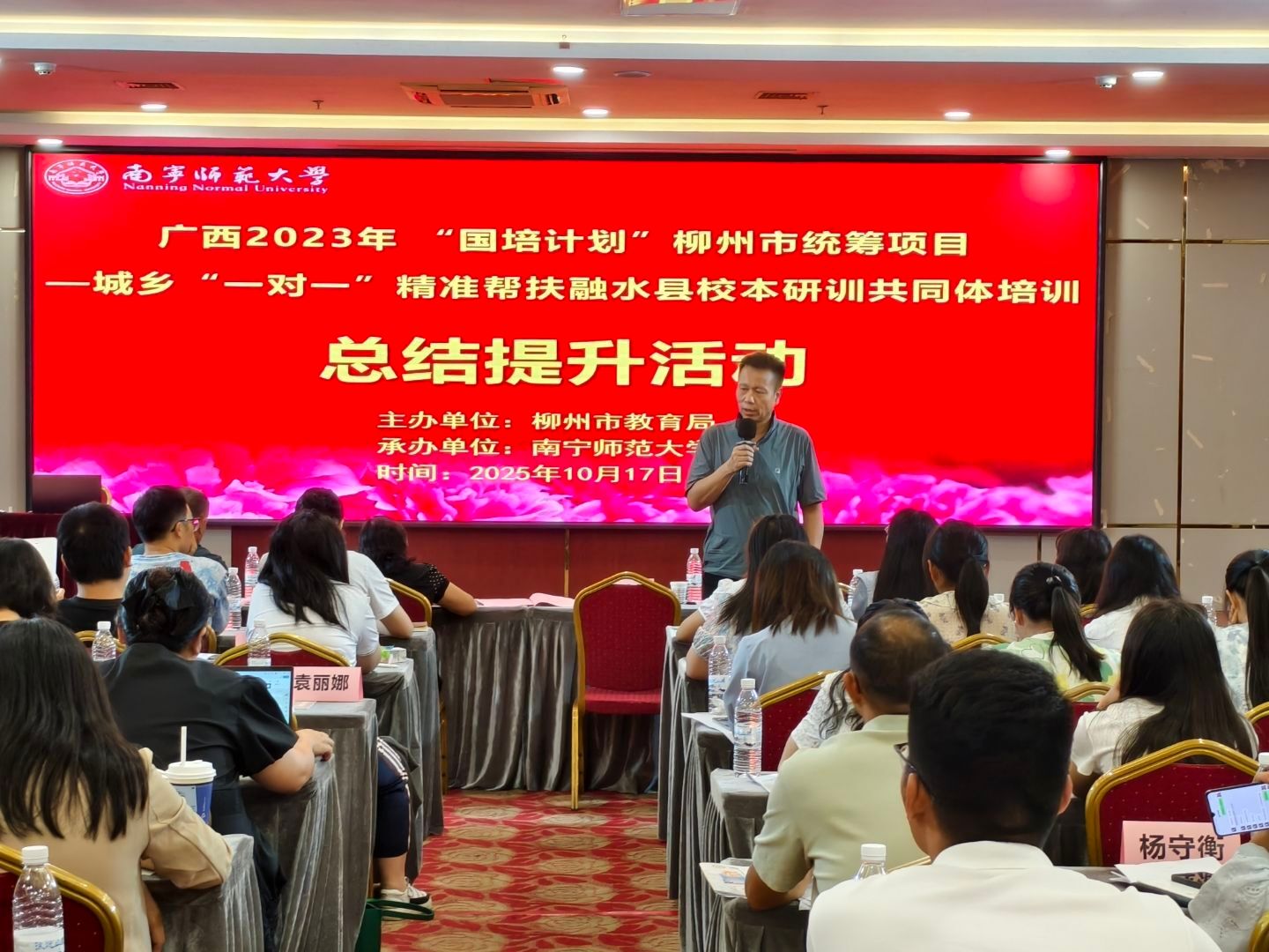 近日,由柳州市教育局主办、华体会平台(中国)承办的广西2023年“国培计划”柳州市统筹项目——城乡“一对一”精准帮扶融水县校本研训共同体培训顺利结束。该项目自2023年9月启动,至2025年10月18日圆满收官,在为期两年多的时间里,通过系统性、多层次的培训安排,为提升融水县教师教学水平和华体会平台教育质量做出了积极且深远的贡献,成为推动城乡教育协同发展的又一成功实践。