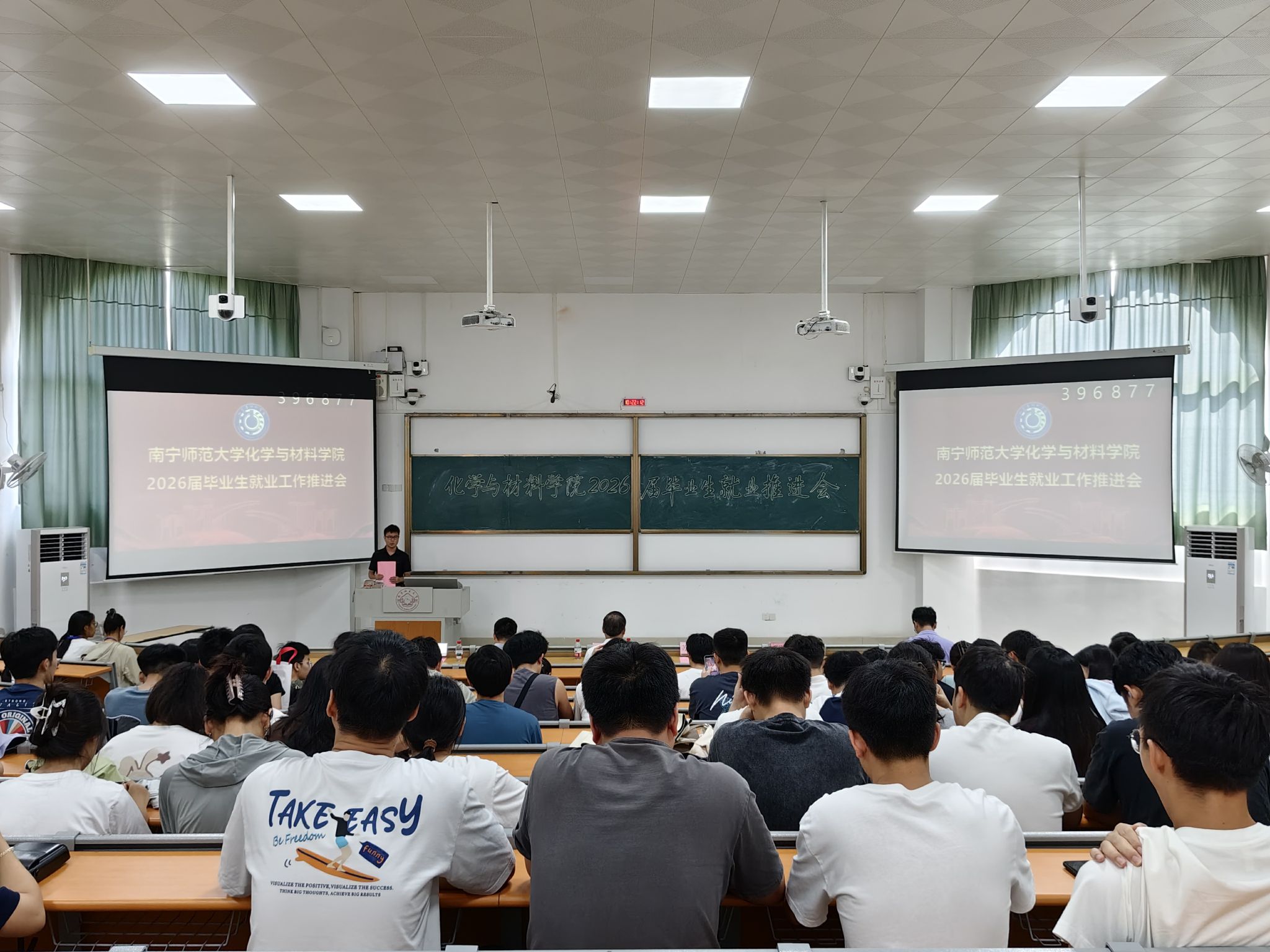 为深入贯彻落实“稳就业、促就业”决策部署,抢抓毕业生就业筹备关键期,10月10日上午,化学与材料学院在武鸣校区2号教学楼221教室召开2026届毕业生就业工作推进会。学院党委书记陈宗武、院长苏炜、党委副书记陈今浩出席,学院辅导员叶雷凯主持。