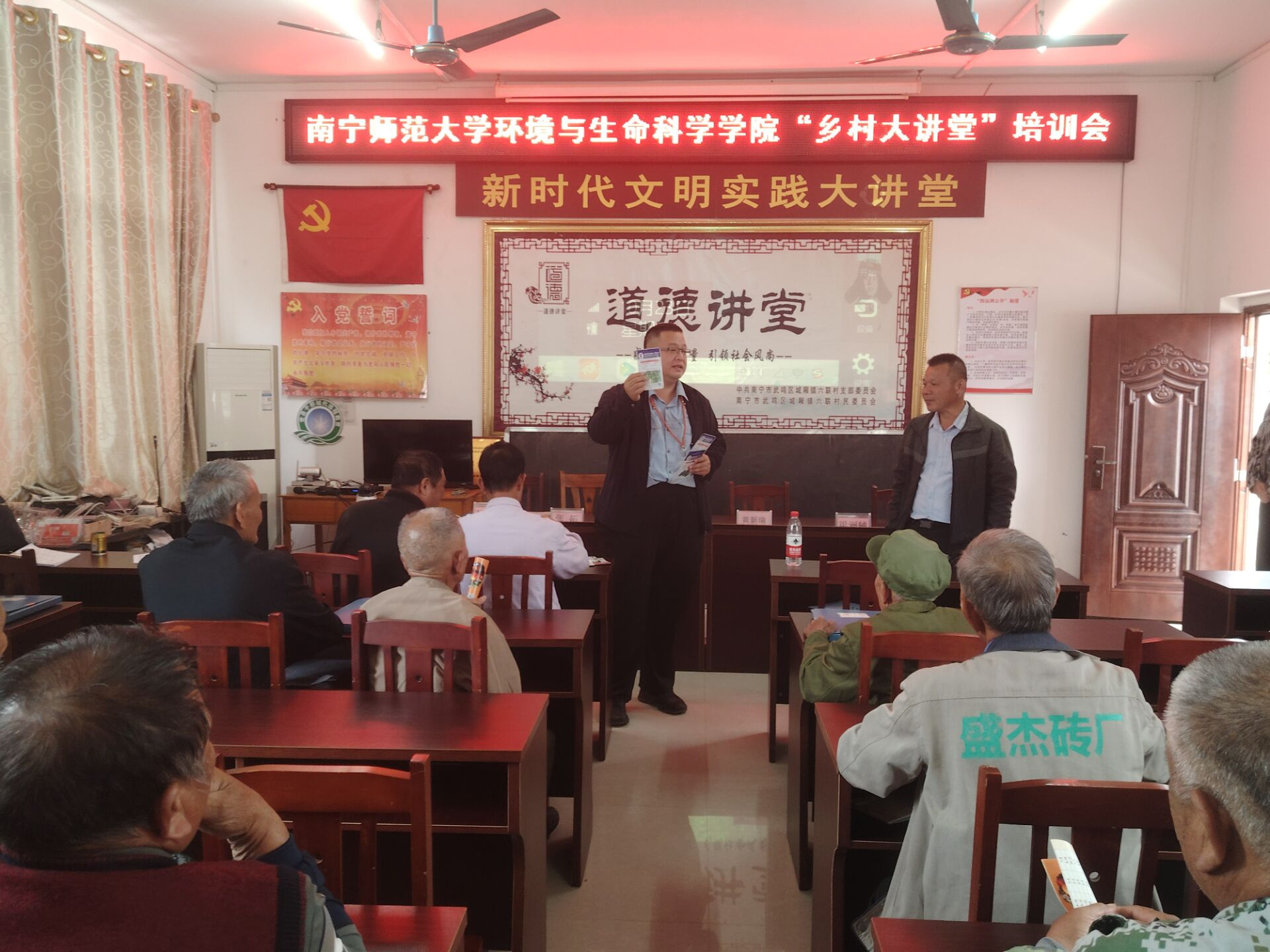 10月23日下午,环境与生命科学学院组织师生前往武鸣区城厢镇六联村,顺利开展第二期“乡村大讲堂”农技培训活动。学院党委组织员普胤杰、专任教师粱洲辅、张拓以及在读硕士研究生孙宇博参加本次活动。