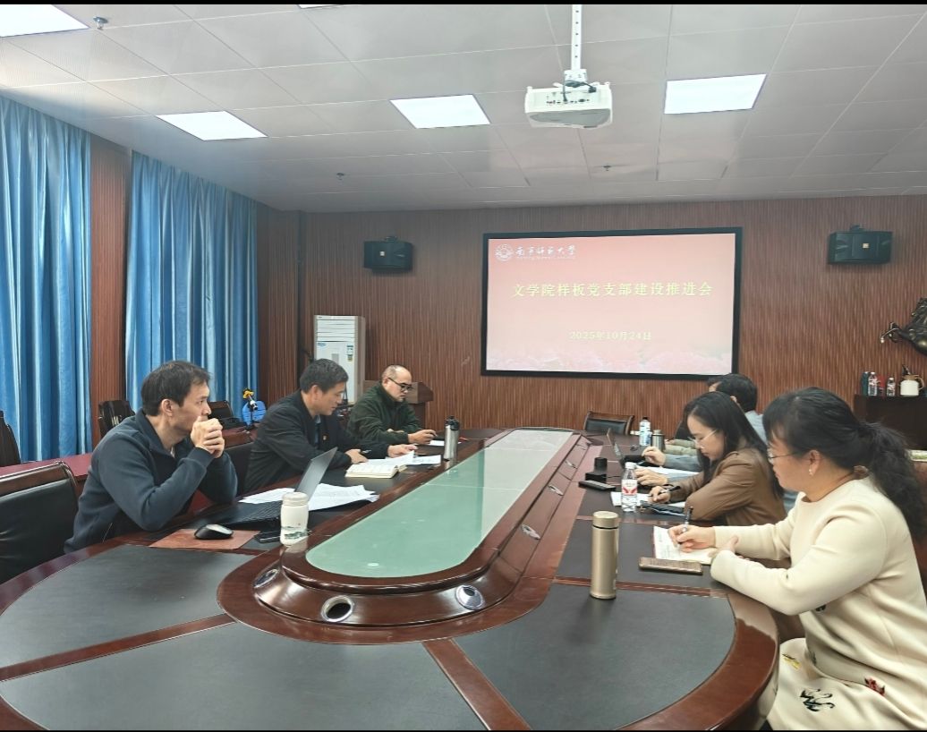 10月24日下午,文学院党委在学院会议室召开了“文学院样板党支部建设推进会”,学院党委书记石勇、党委副书记吴幼坚、组织员陈亚飞,以及文学院教工一支部全体支委等参加了此次会议。