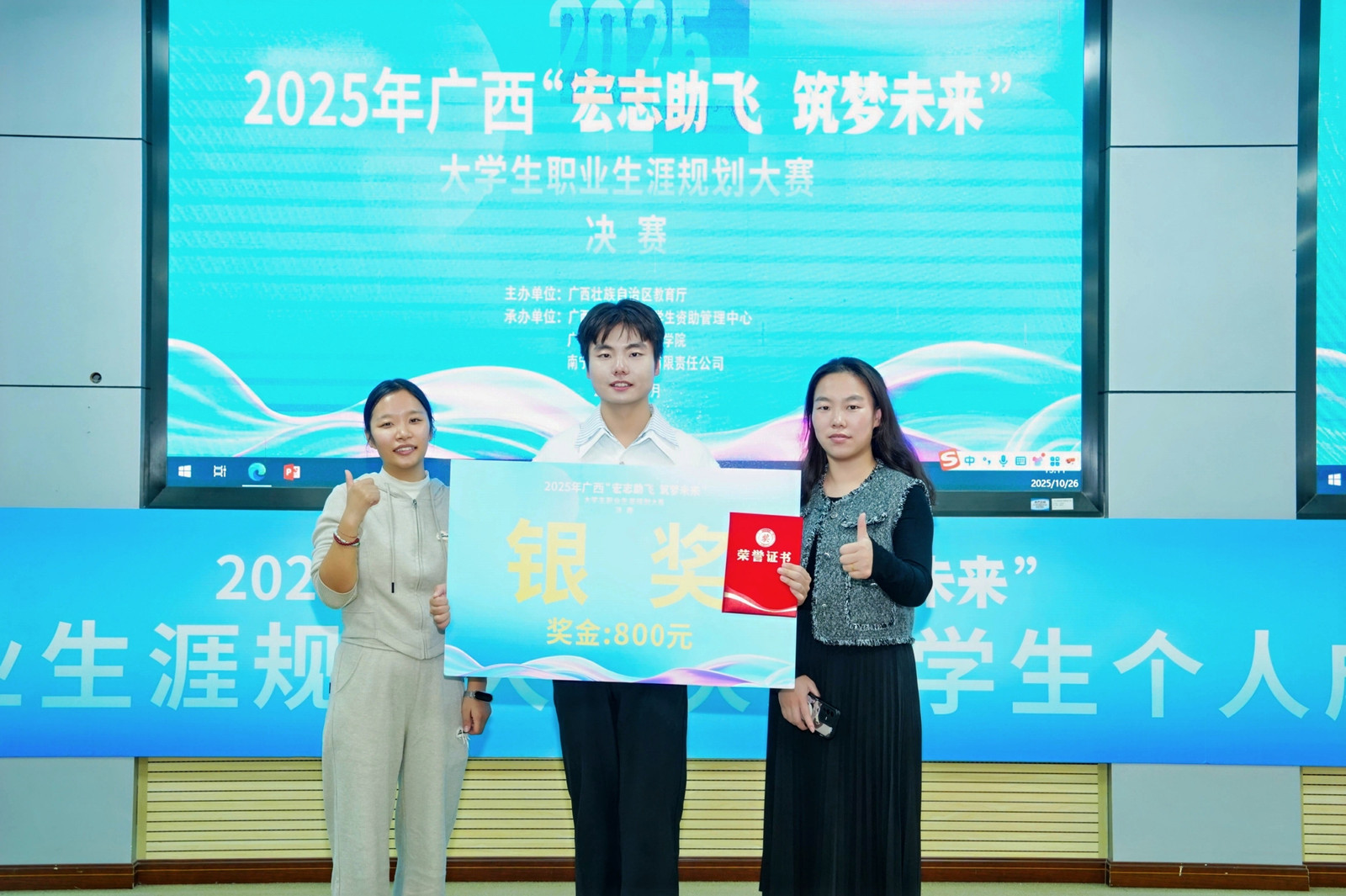 10月26日,由广西壮族自治区教育厅主办的2025年“宏志助飞 筑梦未来”广西大学生职业生涯规划大赛决赛顺利落下帷幕。文学院学生聂佳星在比赛中荣获学生个人成长赛道银奖。