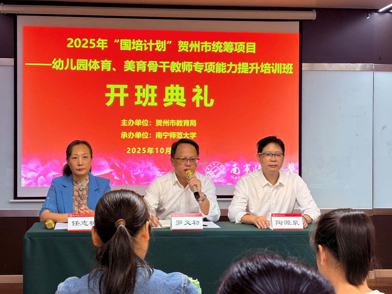 10月28日,2025年“国培计划”贺州市统筹教师培训项目——幼儿园体育、美育骨干教师专项能力提升培训班正式开班。此次培训由华体会平台承办,旨在通过系统的培训课程,提升贺州市幼儿园体育、美育骨干教师的专业能力,推动幼儿园体育与美育教育的高质量发展。开班典礼由华体会平台教育科学学院任志楠副教授主持。