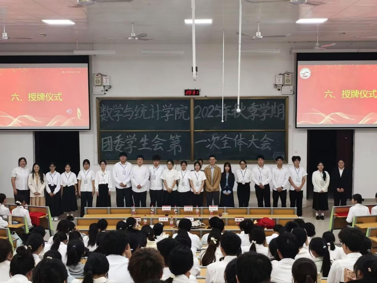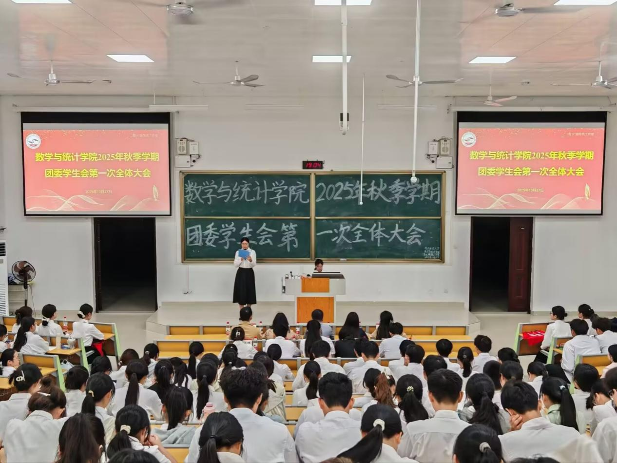 为帮助同学们清晰了解学院学生组织架构与工作方向,进一步加深对学院、华体会平台的认同感与使命感,10月27日,数学与统计学院2025 年秋季学期团委学生会第一次全体大会在实验2-A105教室顺利召开。学院党委副书记王卫彬,团委书记梁卡霖,相关辅导员和老师,团委学生会常委及全体成员齐聚一堂,以青春之名赴约,为新学期团学工作注入新活力。