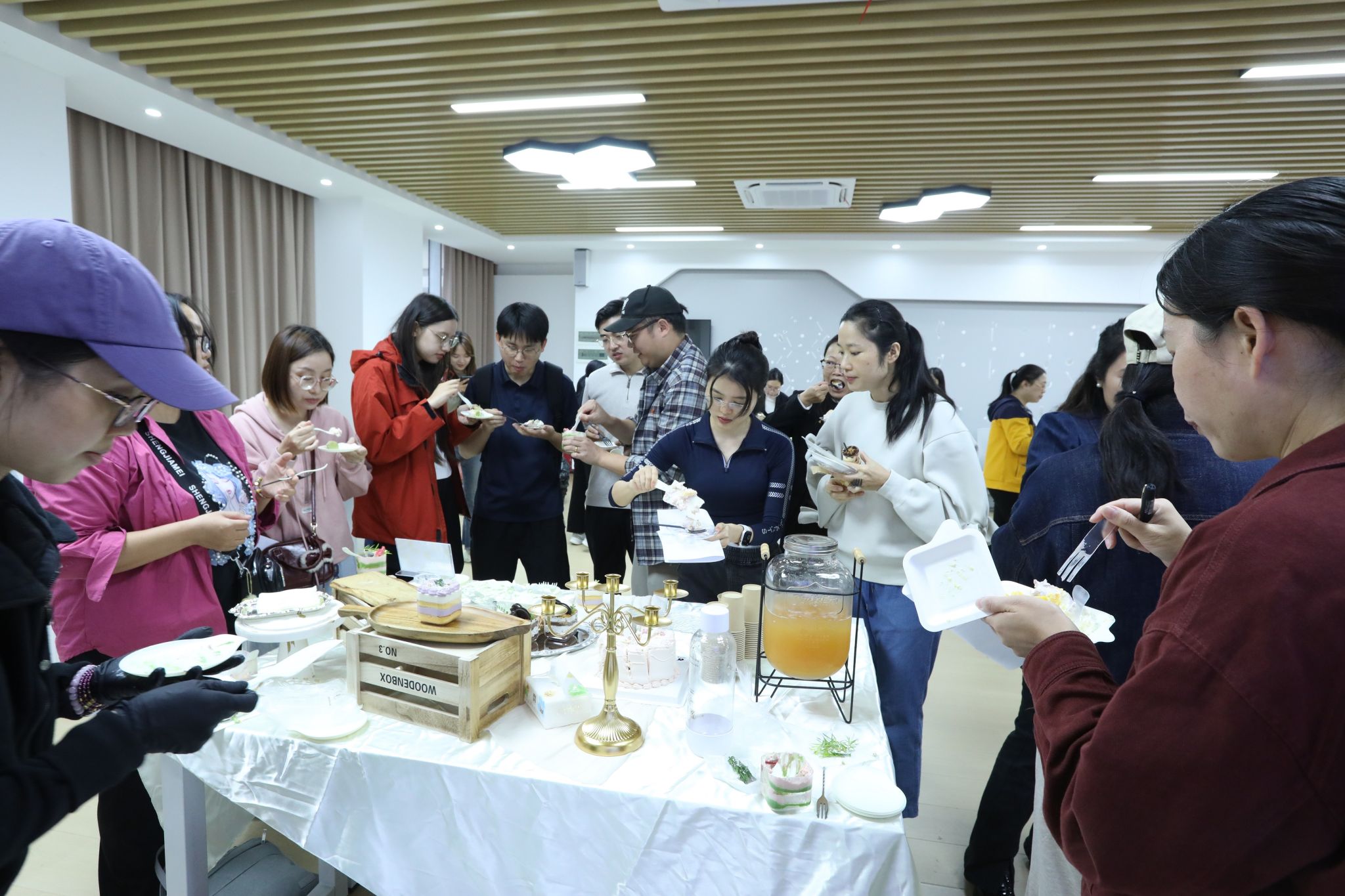 首先,代表们从参评蛋糕品牌的外型、色泽、甜度、口感、创意与特色以及服务等方面现场给出评分,校工会将根据代表们的评分情况选择2026年度生日慰问的供应商。