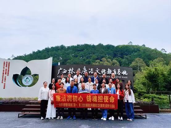 11月1日,经济与管理学院教工第一、第二党支部联合赴广西林业廉洁文化教育基地,组织开展“廉洁润初心 铸魂担使命”廉洁文化教育主题党日活动,本次活动由学院党委书记兼教工第二党支部书记韦海鸣教授、学院院长兼教工第一党支部书记何玲玲教授带队,全体教工党员参加。