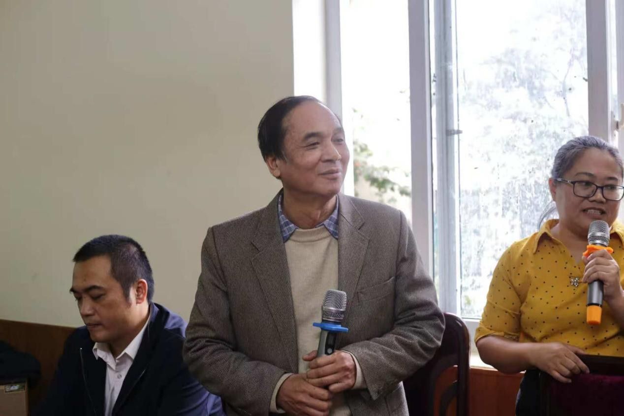 中场欣赏完越方学生的精彩献唱后,河内国家大学所属社会科学与人文大学哲学系阮光兴教授进行了学术分享,他分析了当前马克思主义研究的三大主流方向,勉励在场的中越学子勇于承担学术使命,深刻理解探索马克思主义的当代本土化应用,使其更契合自身国情。