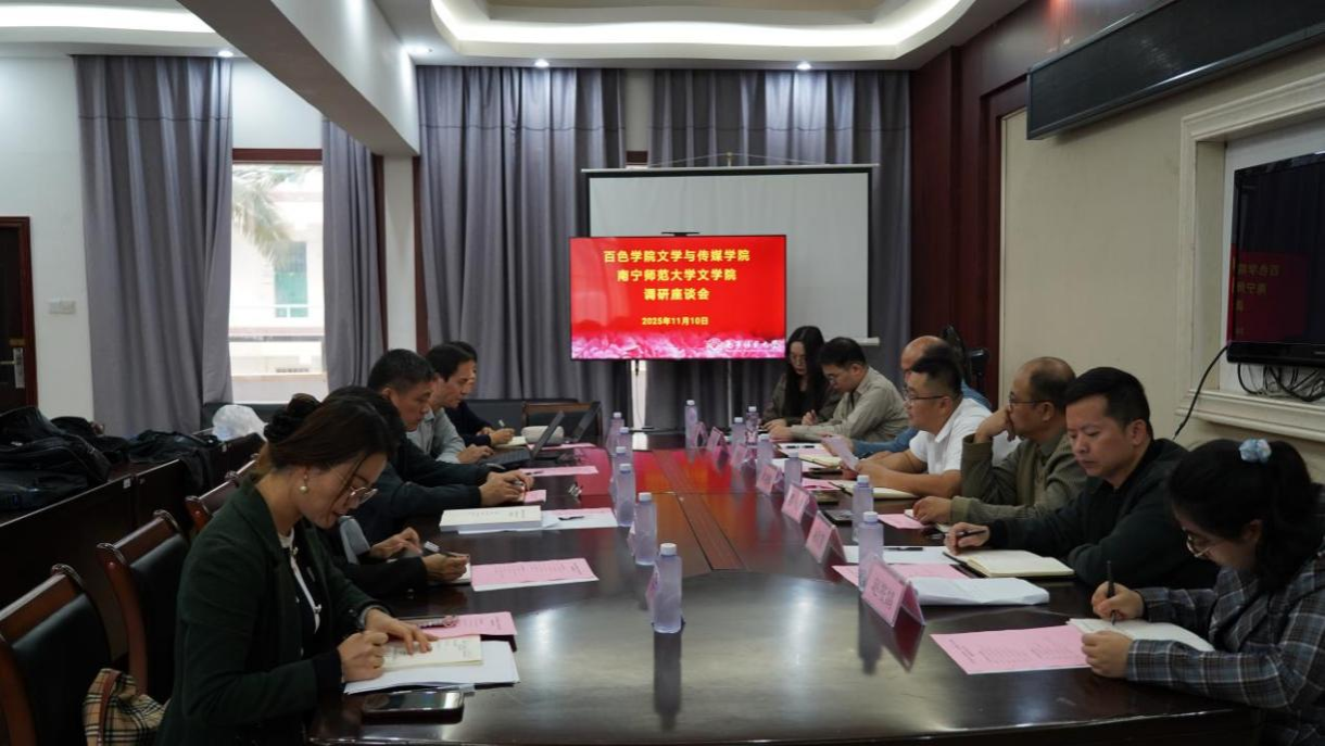 为加强区域间高校交流合作,11月10日上午,百色学院文学与传媒学院党委副书记、院长刘继辉,党委副书记滕韧,副院长李俊文等7位院领导及专业骨干教师到华体会平台(中国)文学院开展交流学习。文学院党委书记石勇、副院长刘振平(主持行政工作)等人热情接待了刘继辉院长一行。