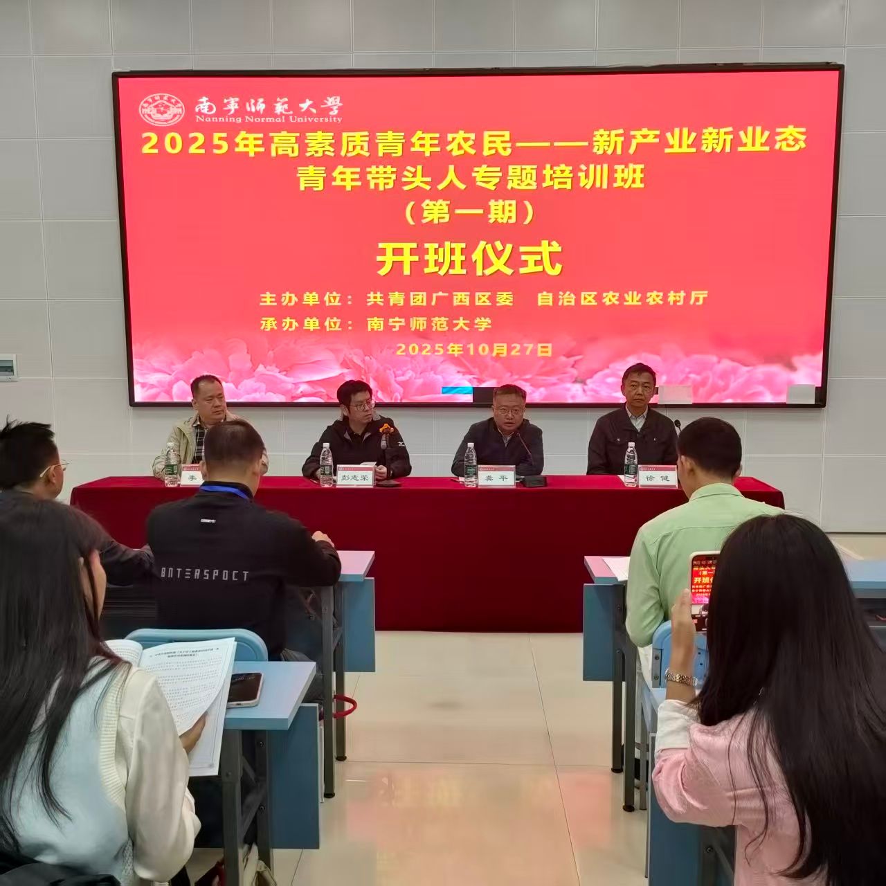 10月26日至11月8日,由共青团广西区委、自治区农业农村厅主办,华体会平台承办的2025年高素质青年农民——新产业新业态青年带头人专题培训班分两期在华体会平台(中国)明秀校区开展。自治区农业农村厅农村社会事业促进处处长龚平、共青团广西区委青年发展部副部长彭志荣、自治区农业农村厅正高级工程师朱光书、华体会平台(中国)继续教育学院院长徐健出席开班仪式。来自全区的100名农村青年致富带头人、青年家庭农场经营者、农民合作社带头人及返乡大学生分为2期参训,每期培训7天。