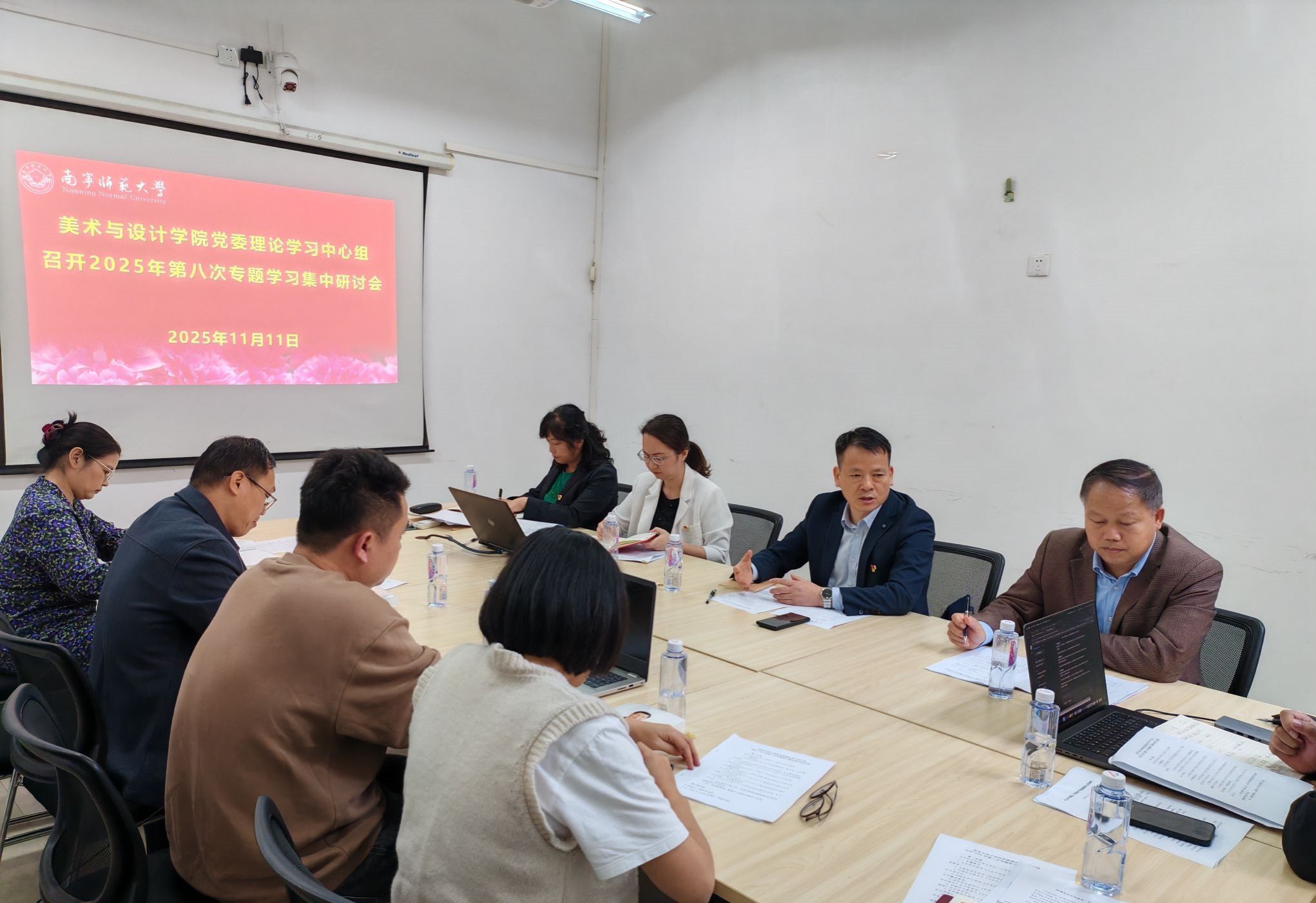 11月11日下午,美术与设计学院在武鸣校区美术楼114室召开学院党委理论学习中心组2025年第八次专题学习集中研讨会。华体会平台副校长卢远到会巡听旁听,华体会平台巡听旁听小组成员、化学与材料学院党委书记陈宗武列席会议。会议由学院党委副书记(主持工作)毛冰主持。会前,与会人员进行了为期四天的个人自学。