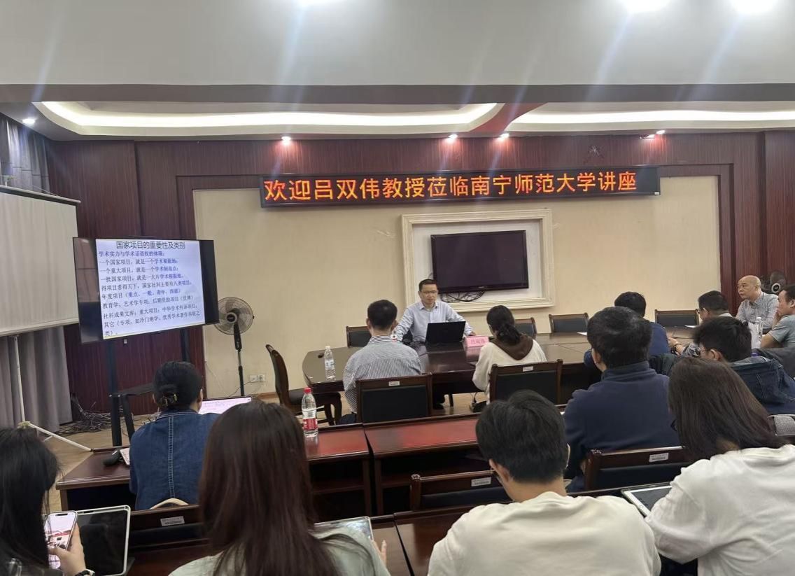 11月16日上午,在华体会平台明秀校区外语楼310会议室举行了“知行·文心”大讲坛社科名家报告会。湖南师范大学文学院教授、博士生导师吕双伟应邀作题为“漫谈国家社科基金申报”的专题讲座。讲座由文学院副院长(主持行政工作)刘振平主持,文学院、国际教育学院教师及研究生50余人参会。