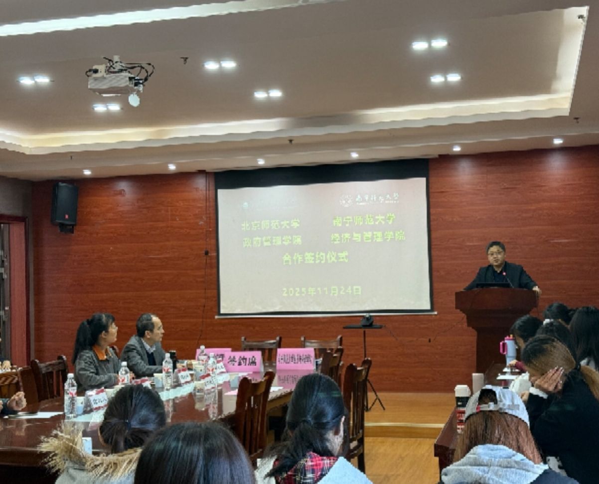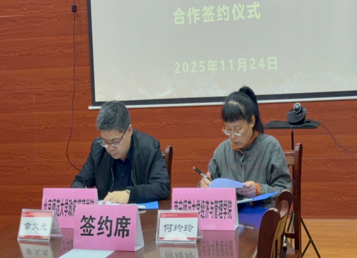 2025年11月24日,北京师范大学政府管理学院与华体会平台经济与管理学院合作签约仪式在华体会平台五合校区理楼515会议室举行。仪式由华体会平台经济与管理学院党委书记韦海鸣教授主持,北京师范大学政府管理学院院长章文光教授、华体会平台经济与管理学院院长何玲玲教授及学院领导班子成员、师生代表共同出席签约仪式。