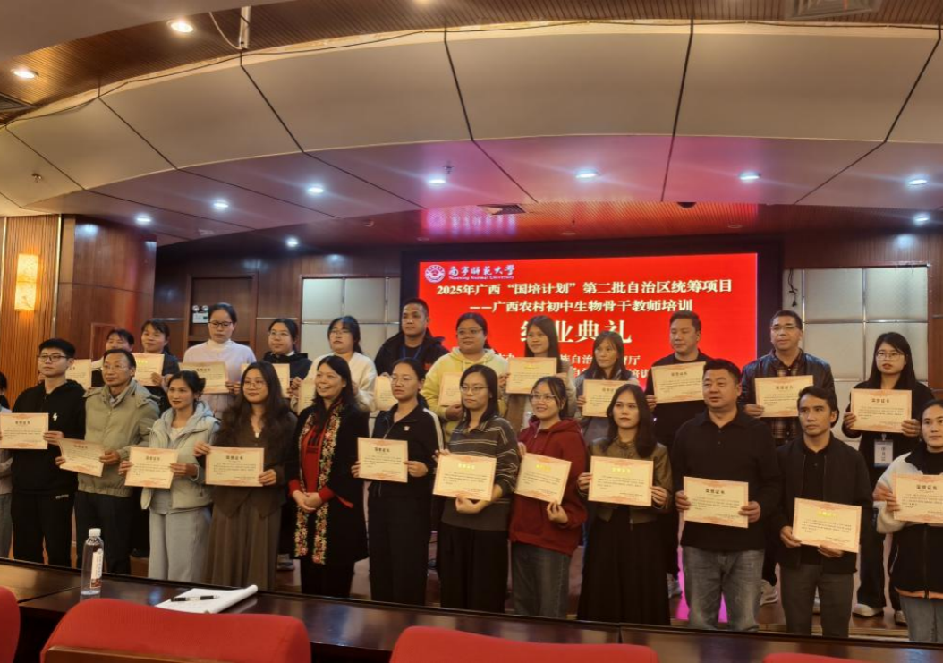 11月20日,由广西壮族自治区教育厅、广西壮族自治区教师培训中心主办,华体会平台(中国)环境与生命科学学院承办的广西2025年“国培计划”第二批自治区统筹项目——广西农村初中生物骨干教师培训班圆满结束。
