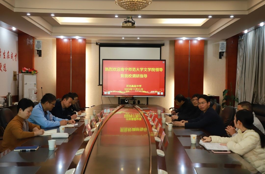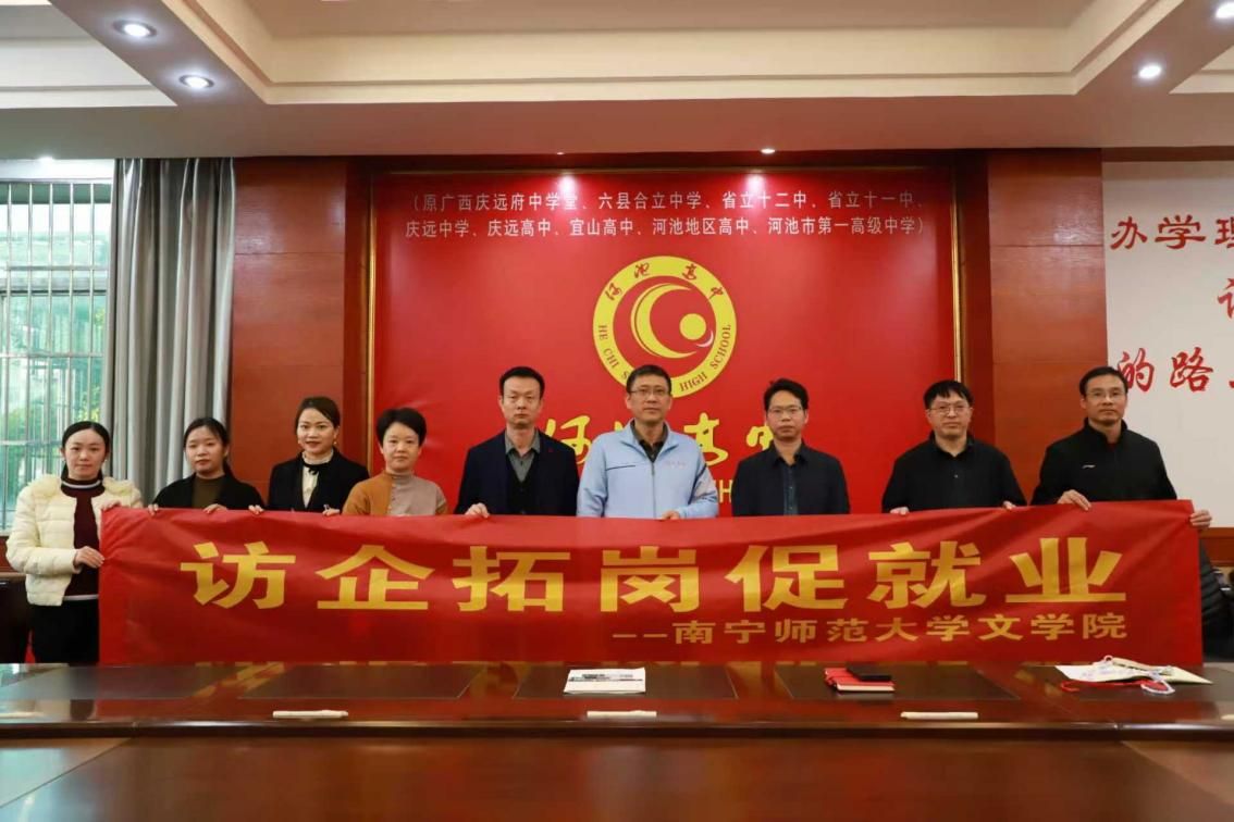 11月21日,华体会平台文学院领导班子及教师代表前往河池高中开展访企拓岗专项活动,对接学生就业推荐与来校招聘事宜。