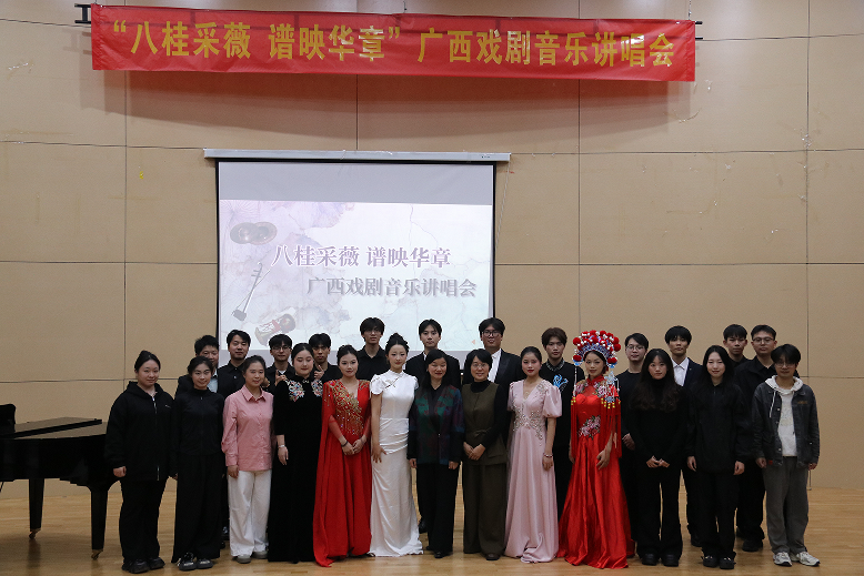 11月26日晚,“八桂采薇 谱映华章”广西戏剧音乐讲唱会在武鸣校区音舞楼音乐厅举行。本次讲唱会由音乐与舞蹈学院举办,特邀云南师范大学艺术学院杨琛教授、广西壮族自治区民族文化艺术研究院黄羽研究馆员担任学术顾问。